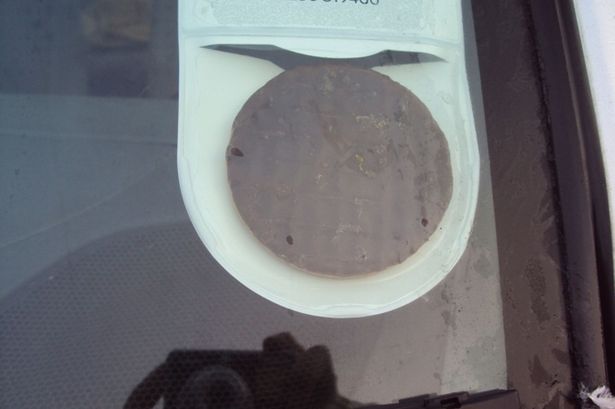 The nasty residue left behind on the windscreen from the tax disc holder..