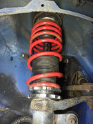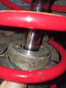 I've got a car with crappy ta technix coilovers installed. I'm going to upgrade this suspension, but wondering about leaving the spring and threaded sleeve. The problem is clunking and bottoming out widely commented here. Can anyone tell from the picture if the threaded collar is not tightened correctly (sitting too high)? I have suspicion that previous owner did something wrong. I can make better photos and some measurements later.