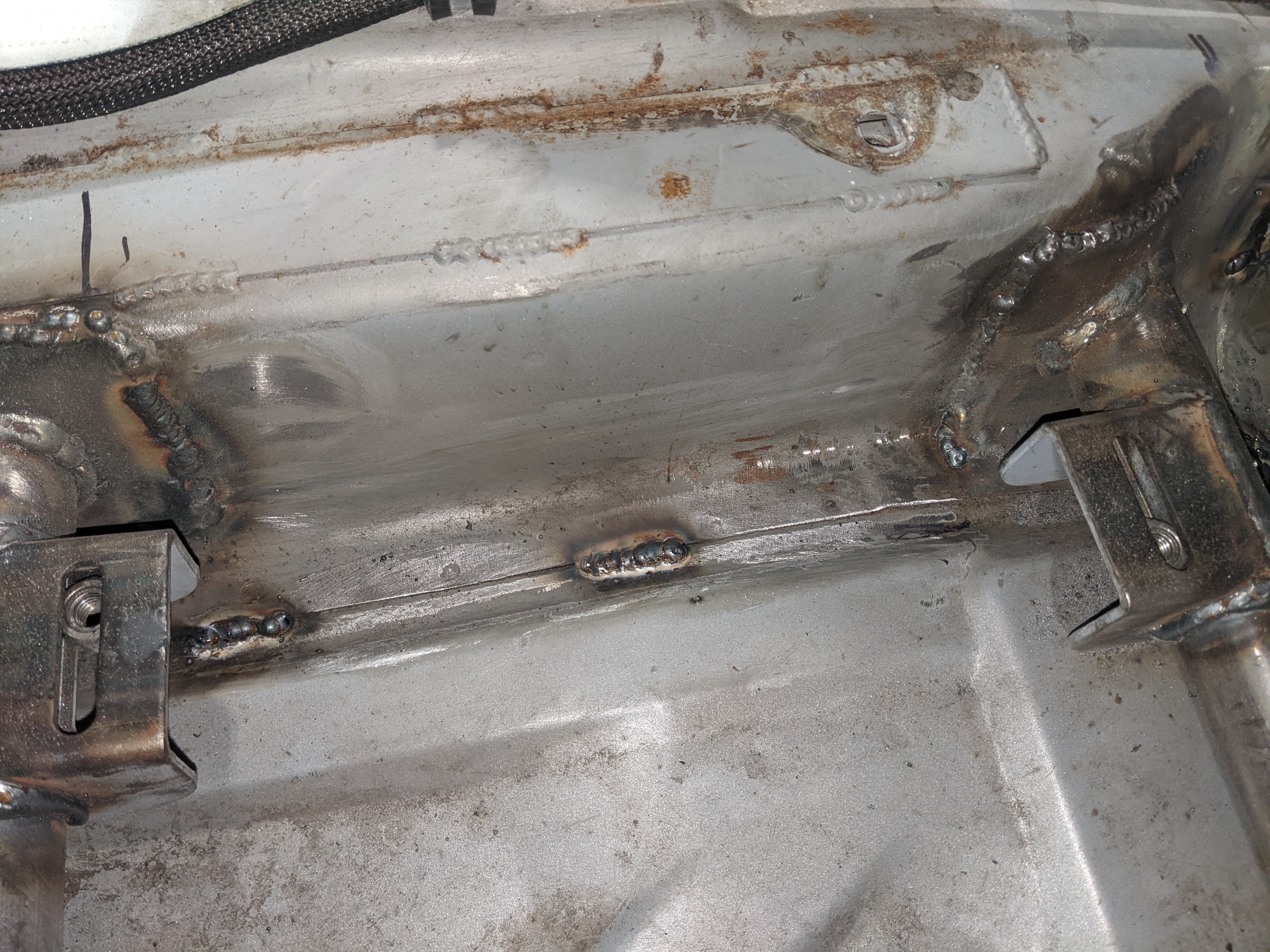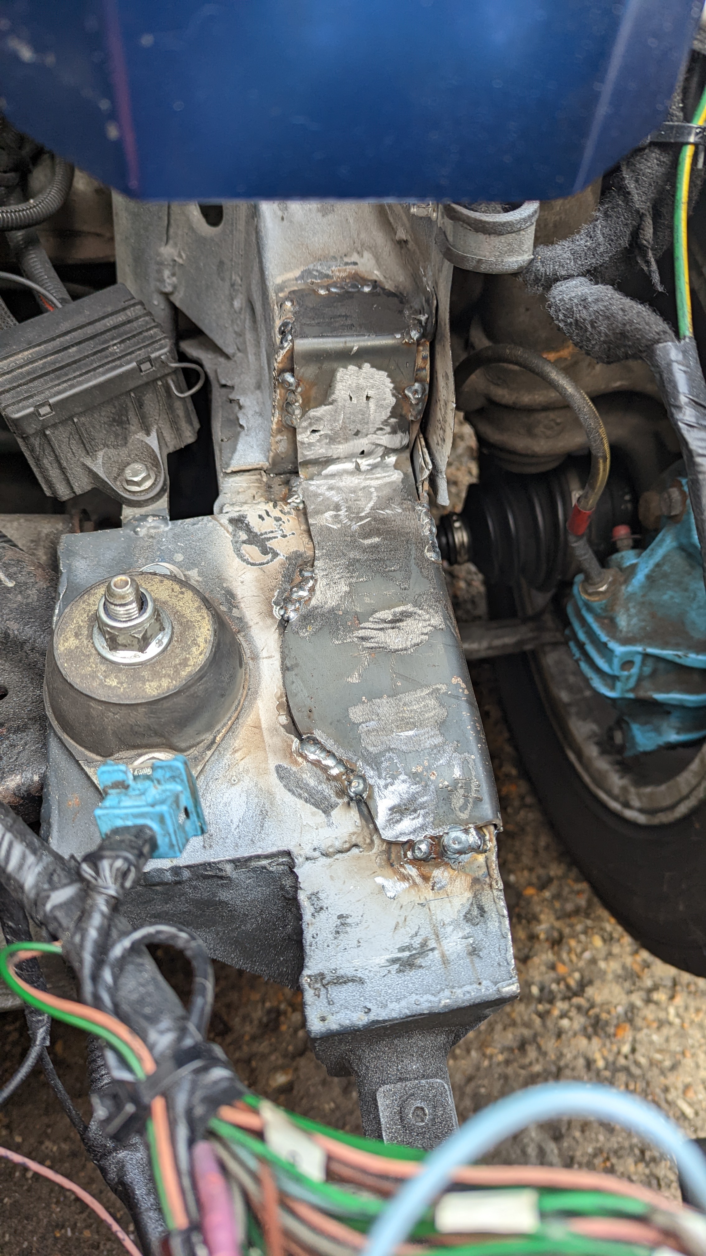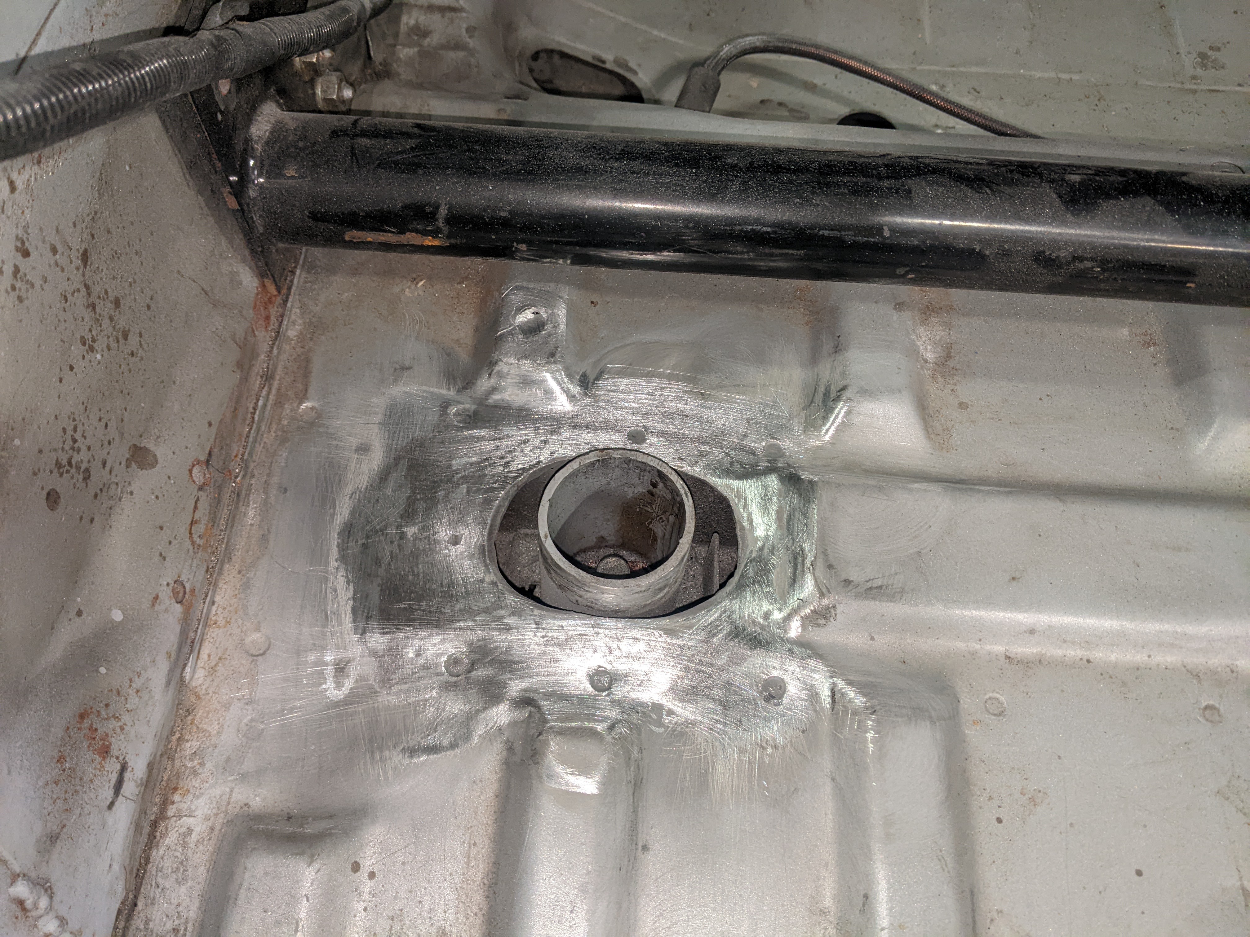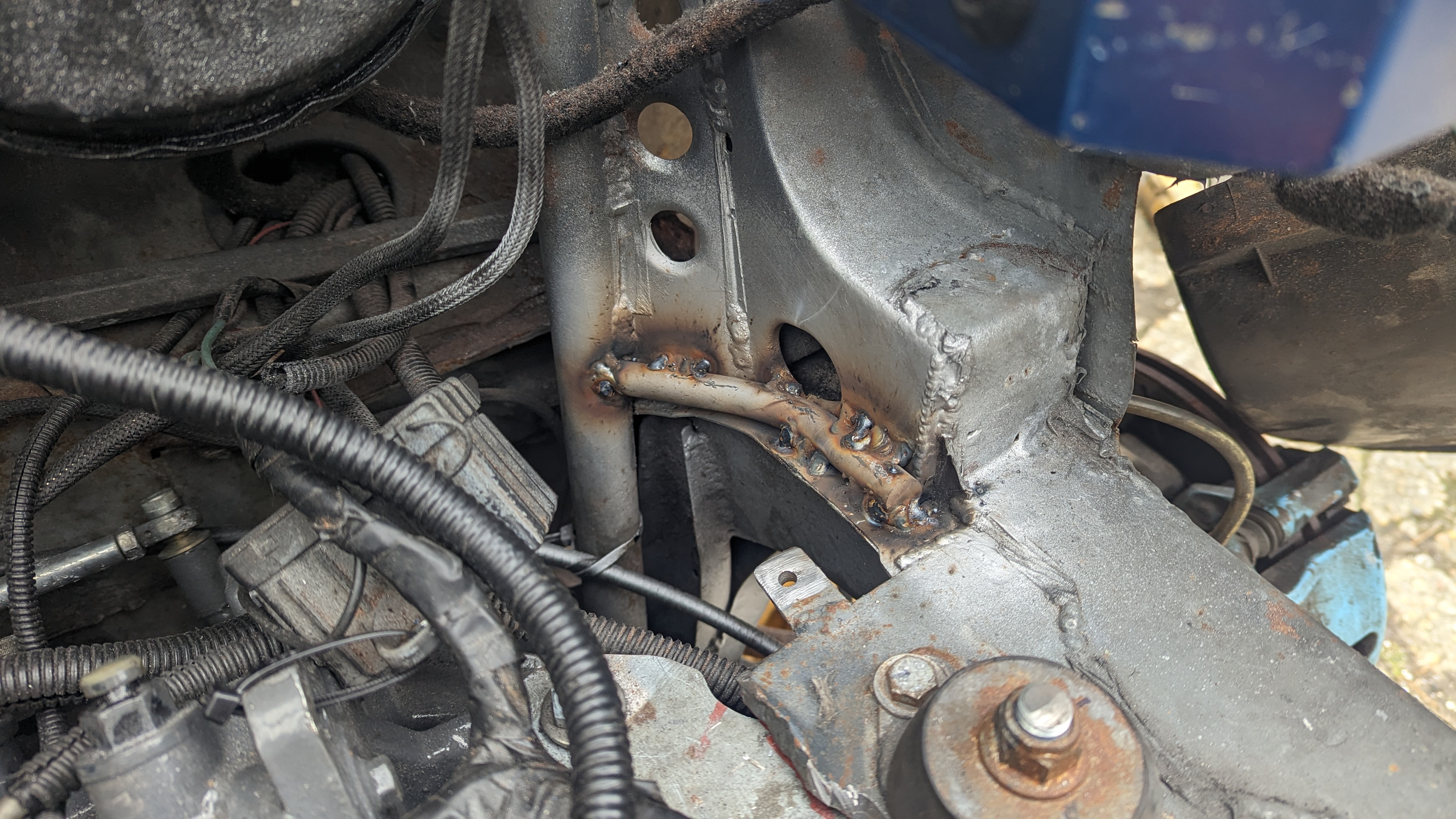 Before putting the new engine in I wanted to do some fab on the engine bay while treating the rust and doing some streghtening too: