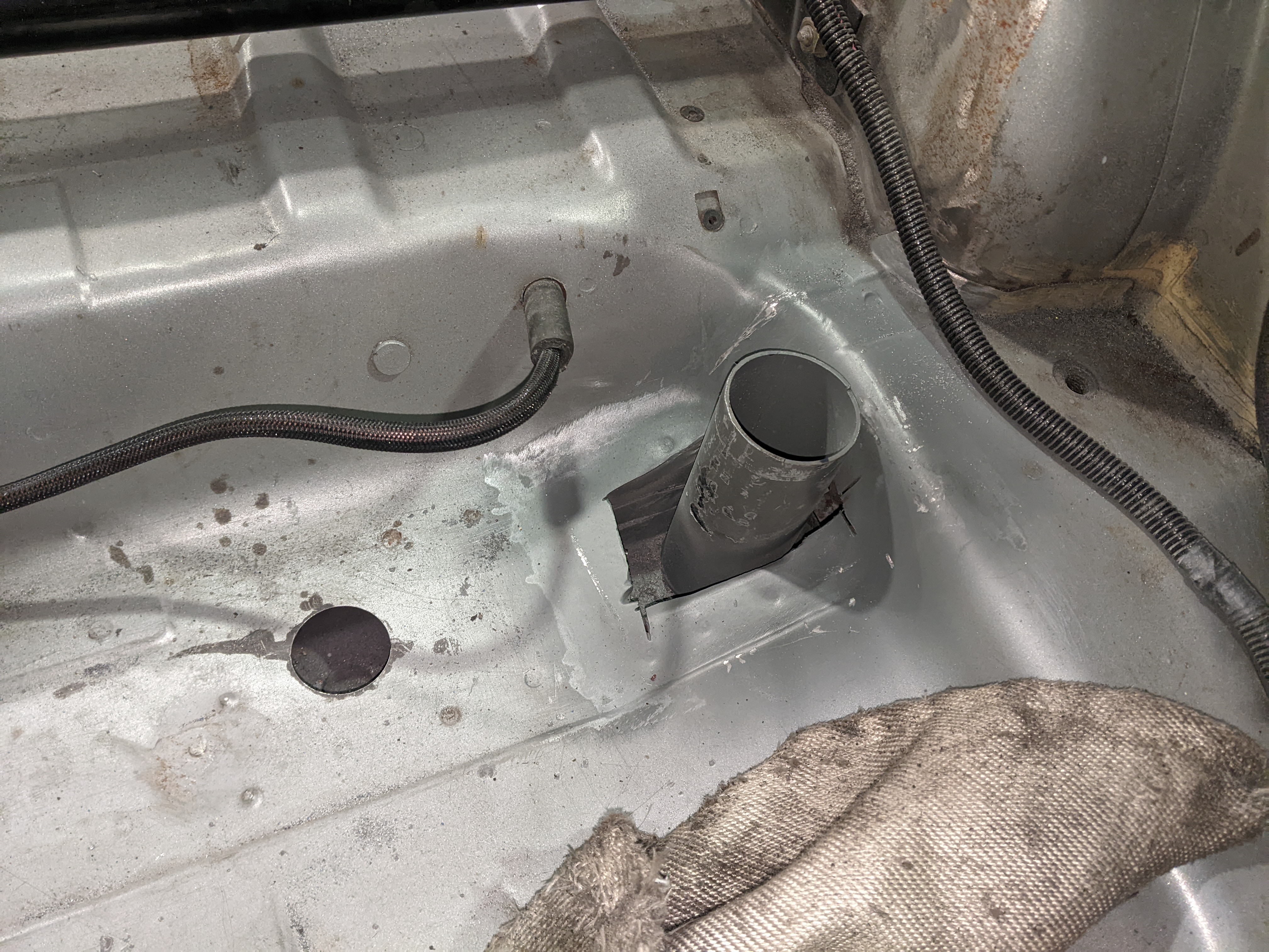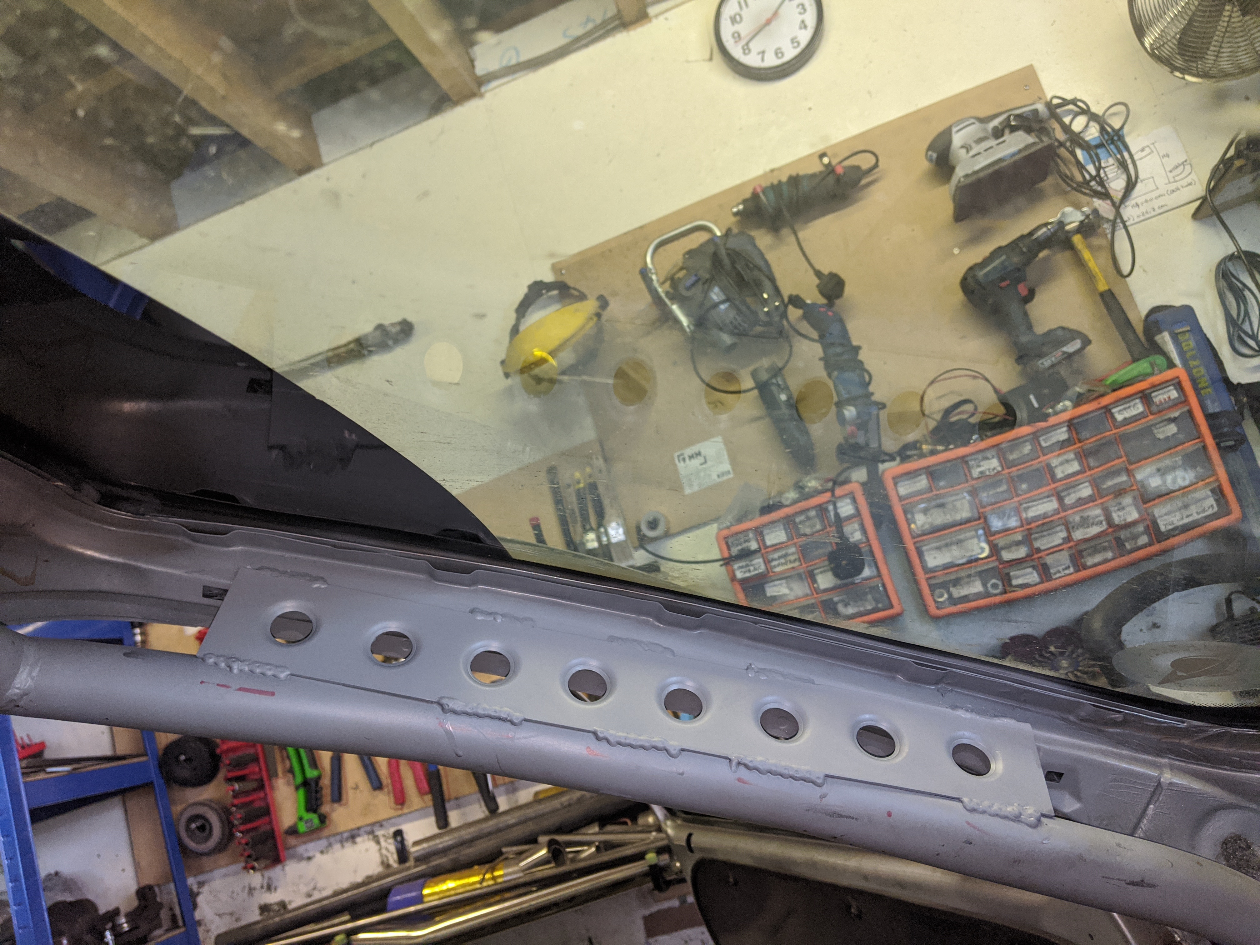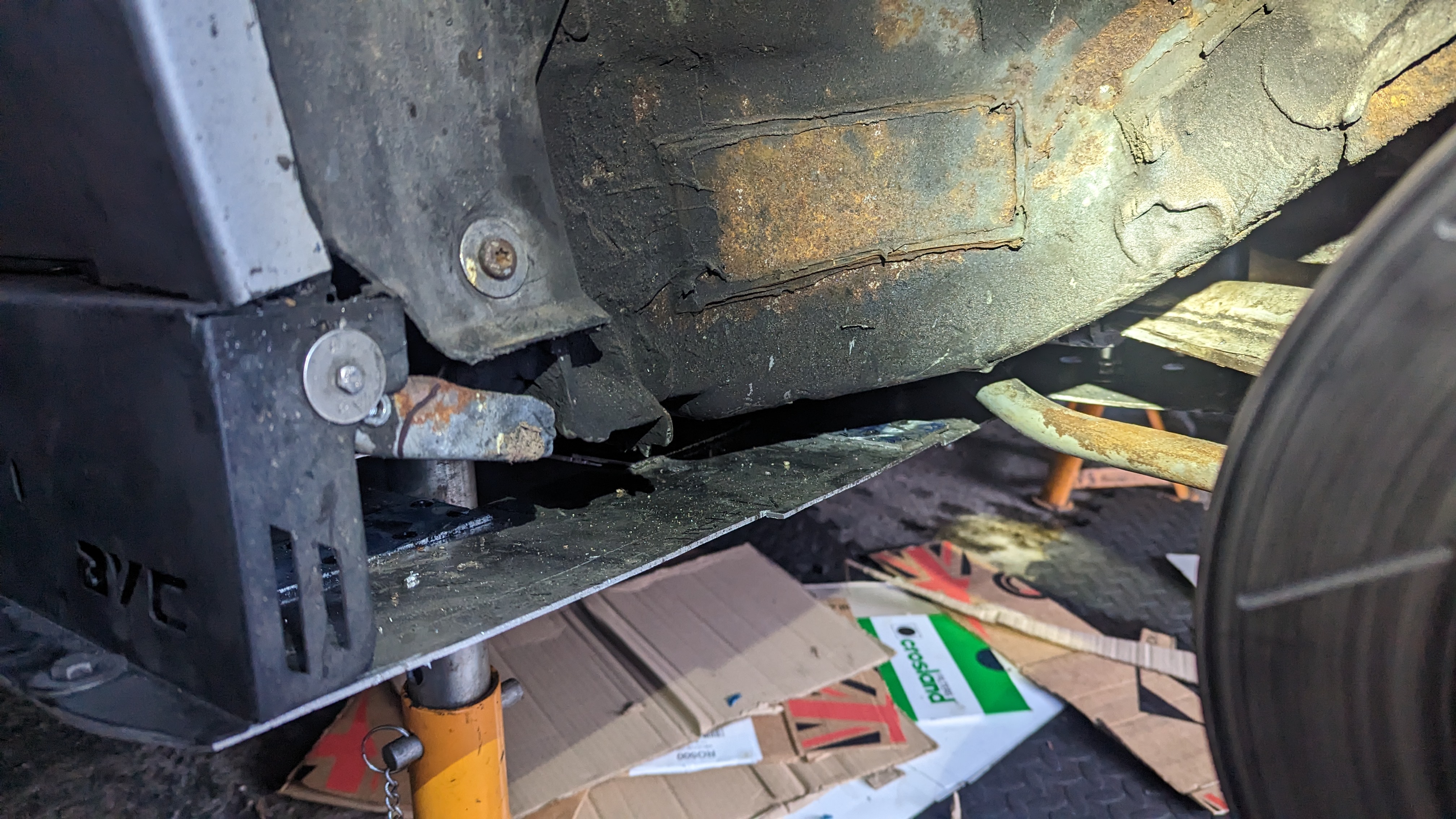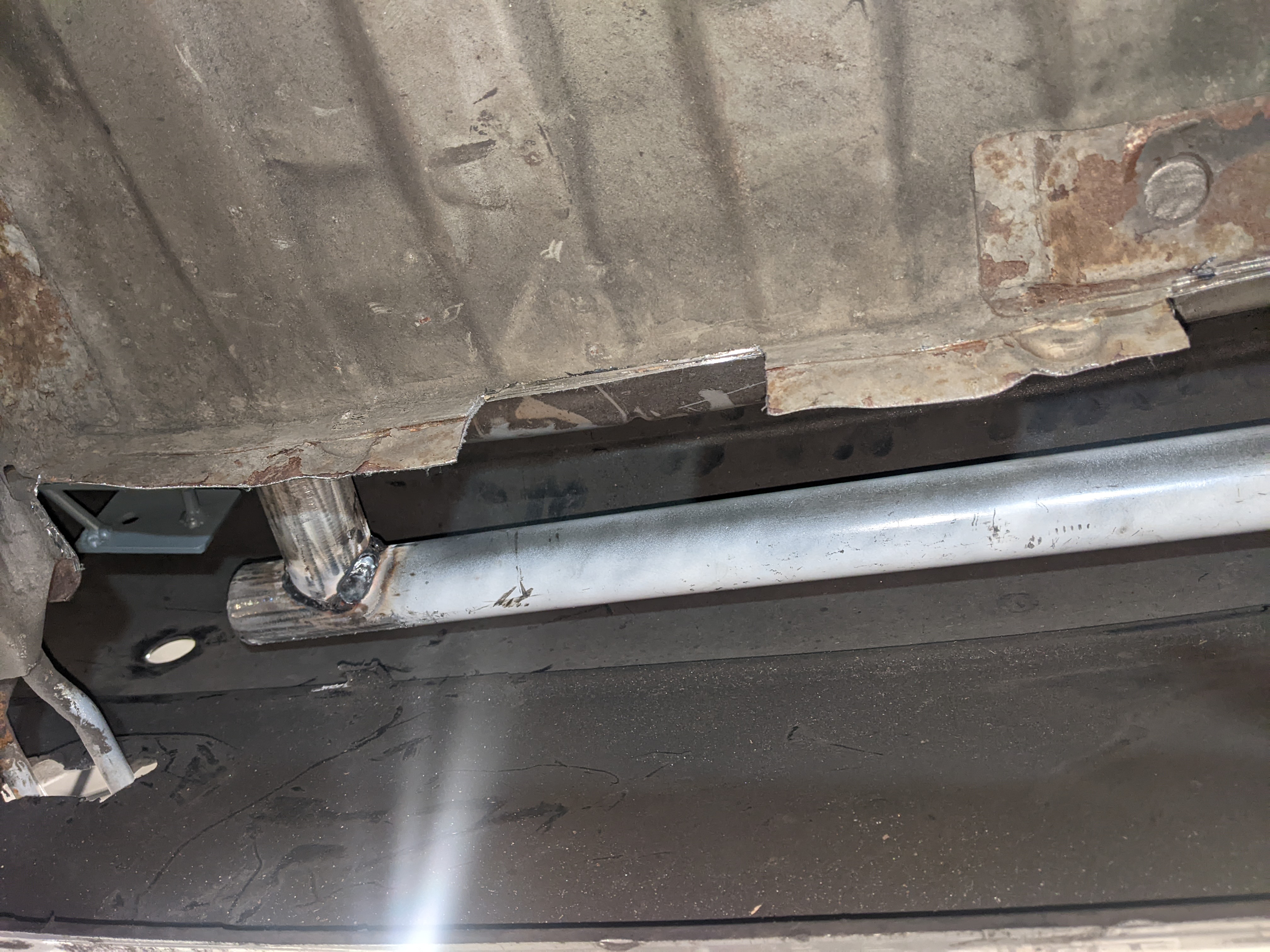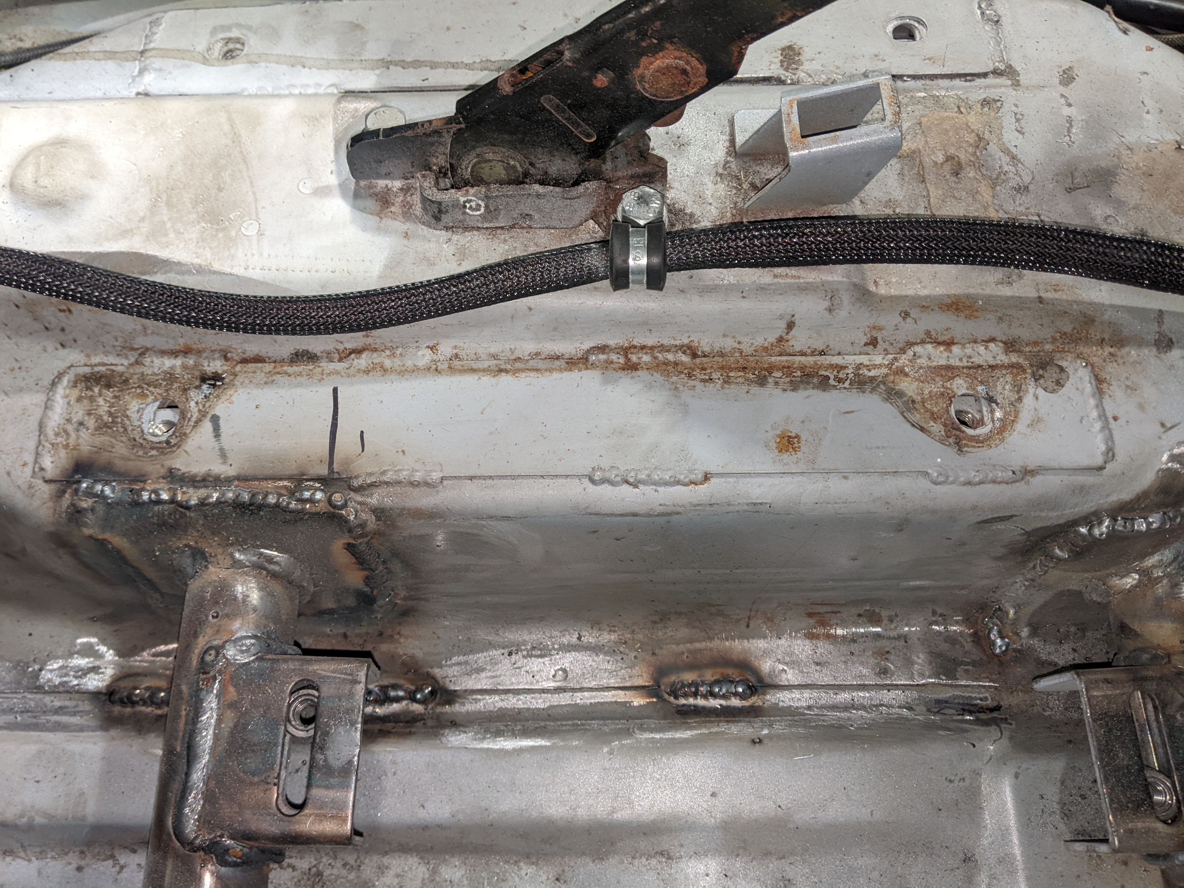 Before putting the new engine in I wanted to do some fab on the engine bay while treating the rust and doing some streghtening too: