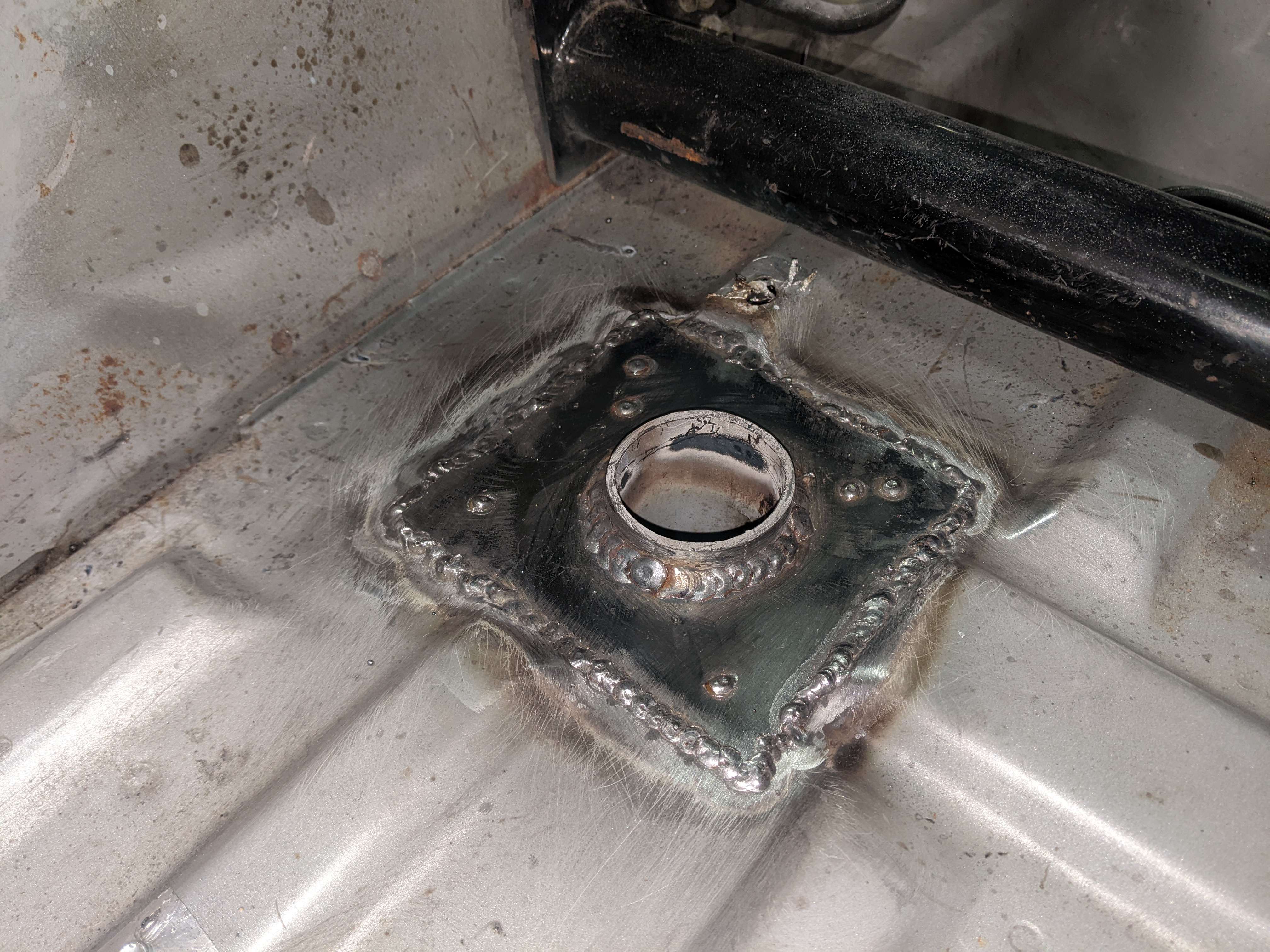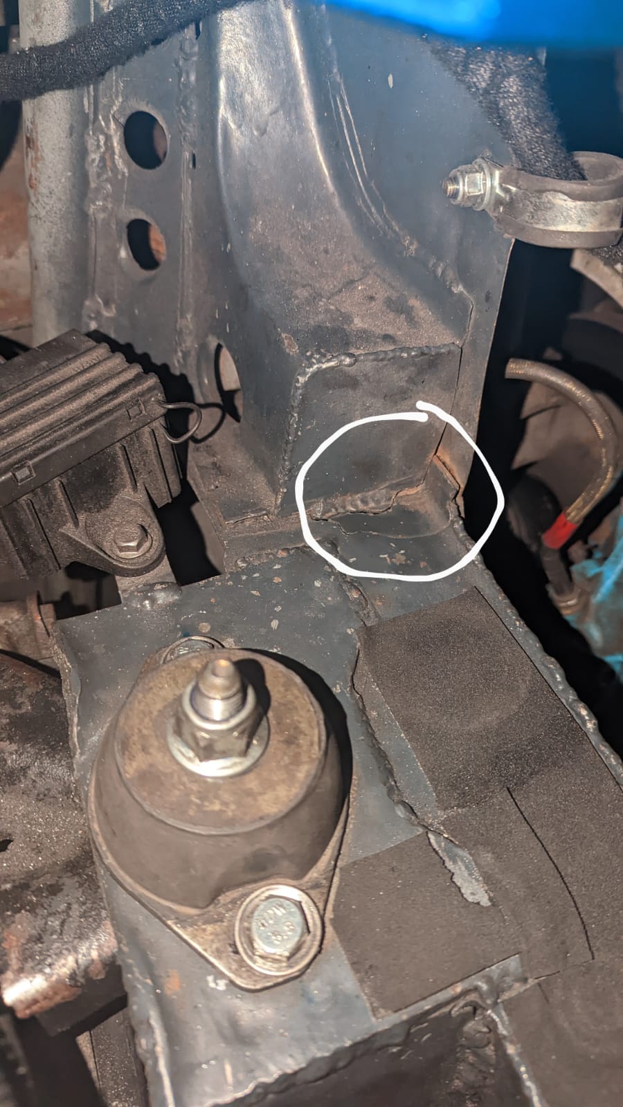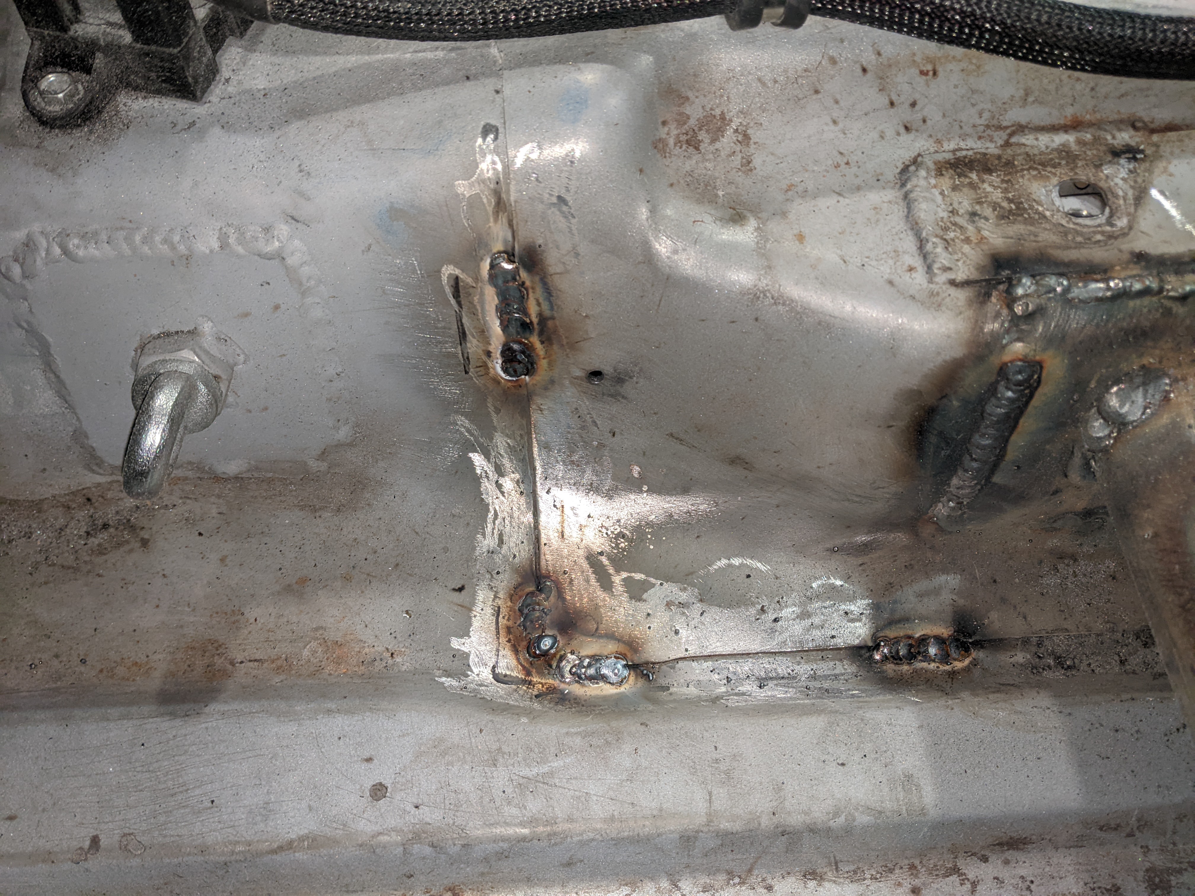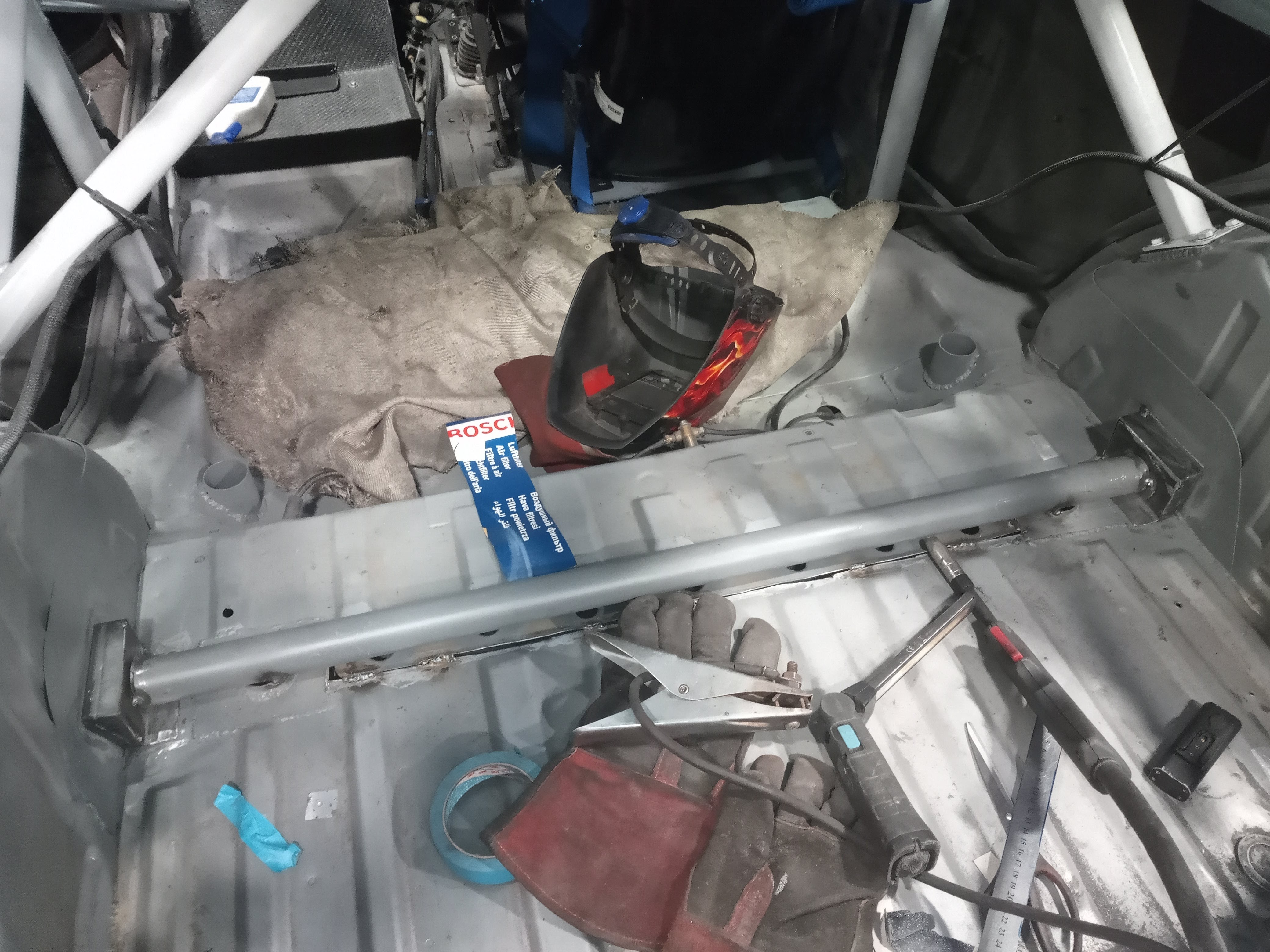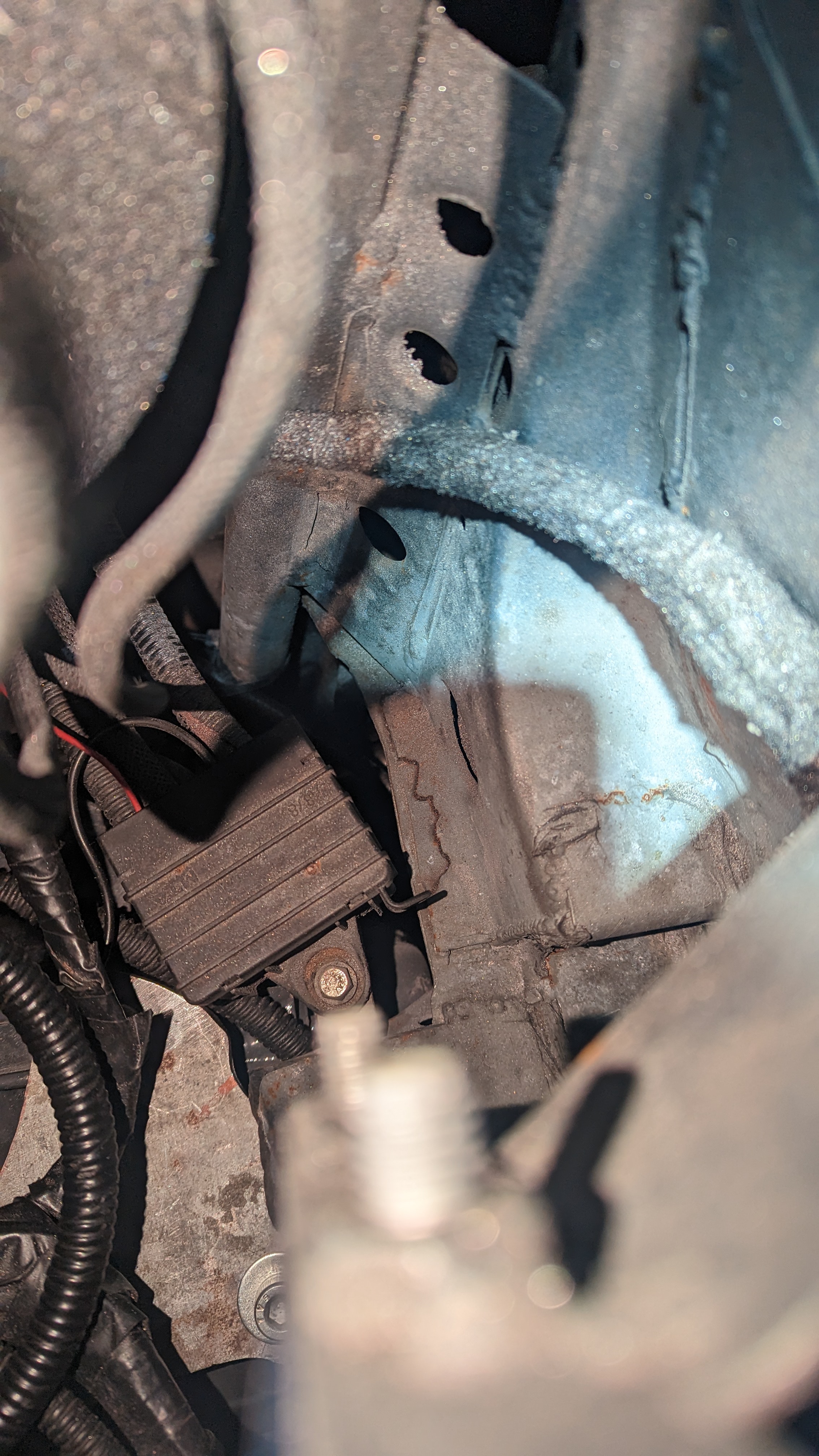 Before putting the new engine in I wanted to do some fab on the engine bay while treating the rust and doing some streghtening too: