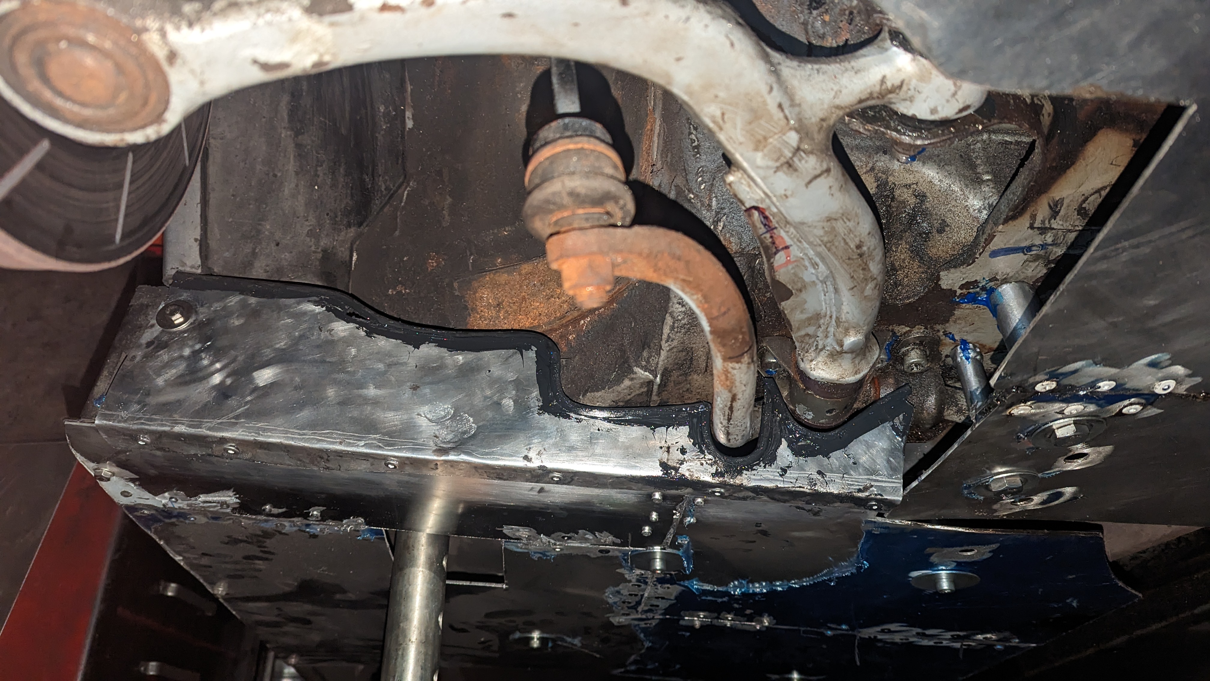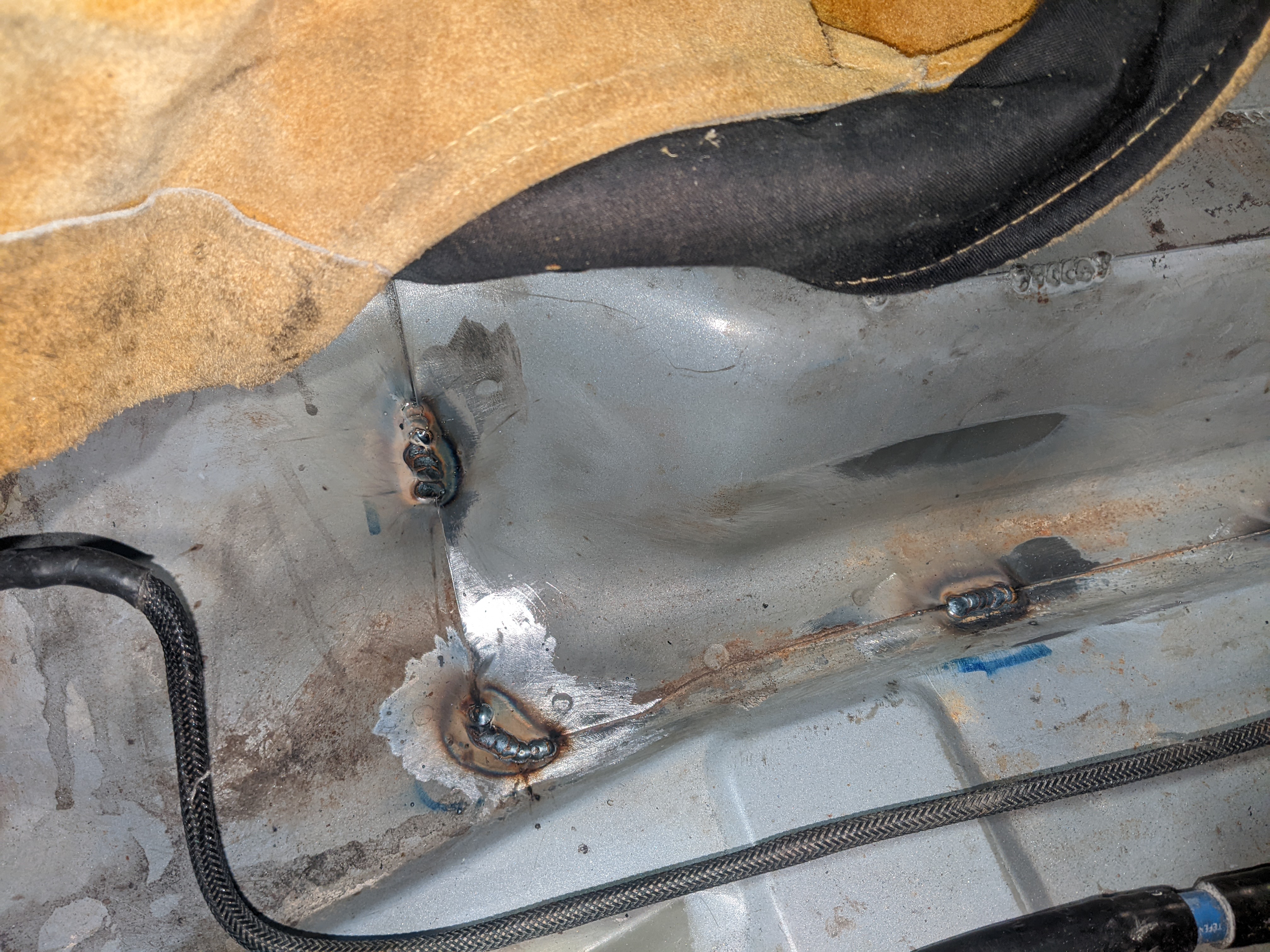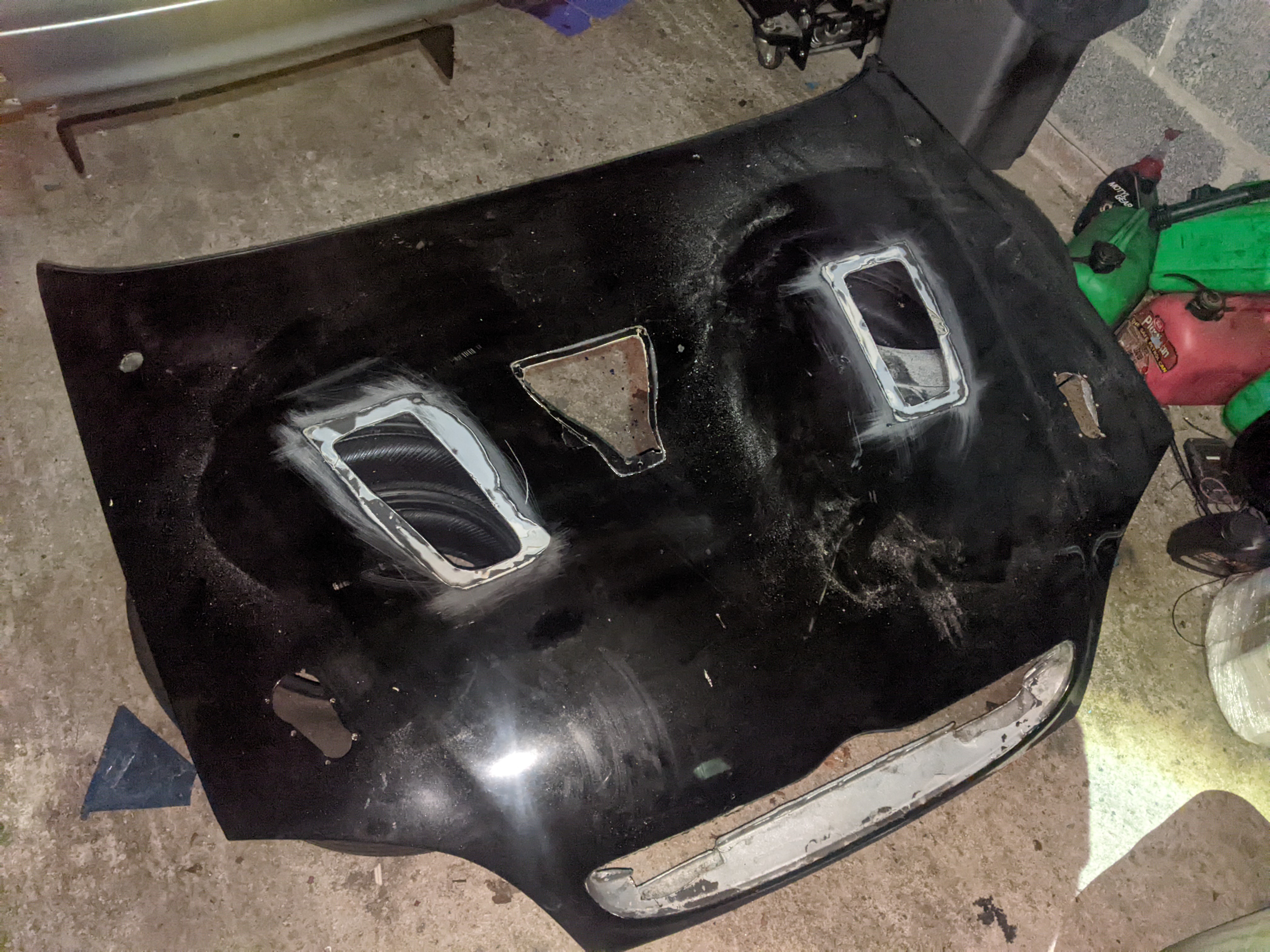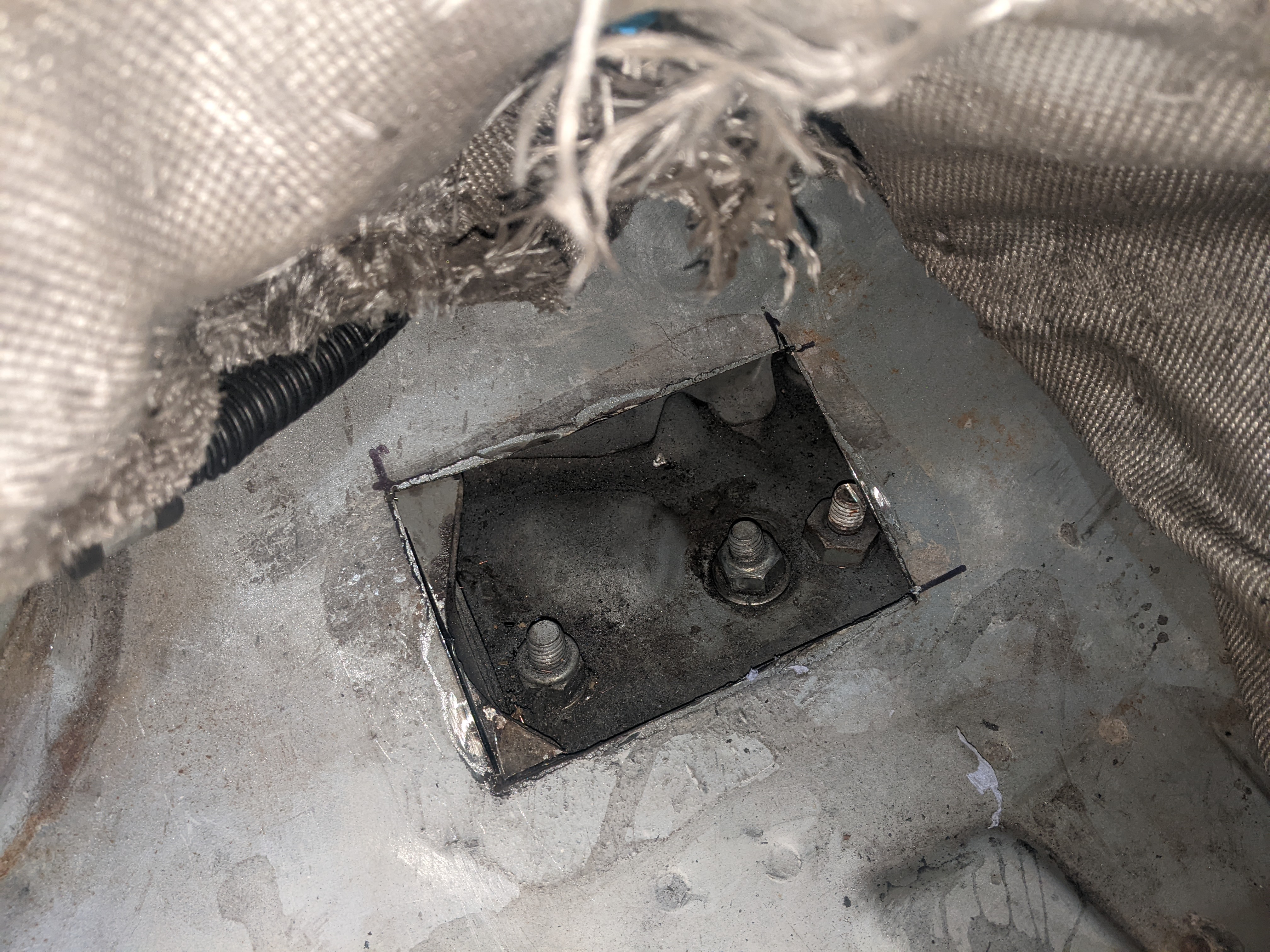 Before putting the new engine in I wanted to do some fab on the engine bay while treating the rust and doing some streghtening too: