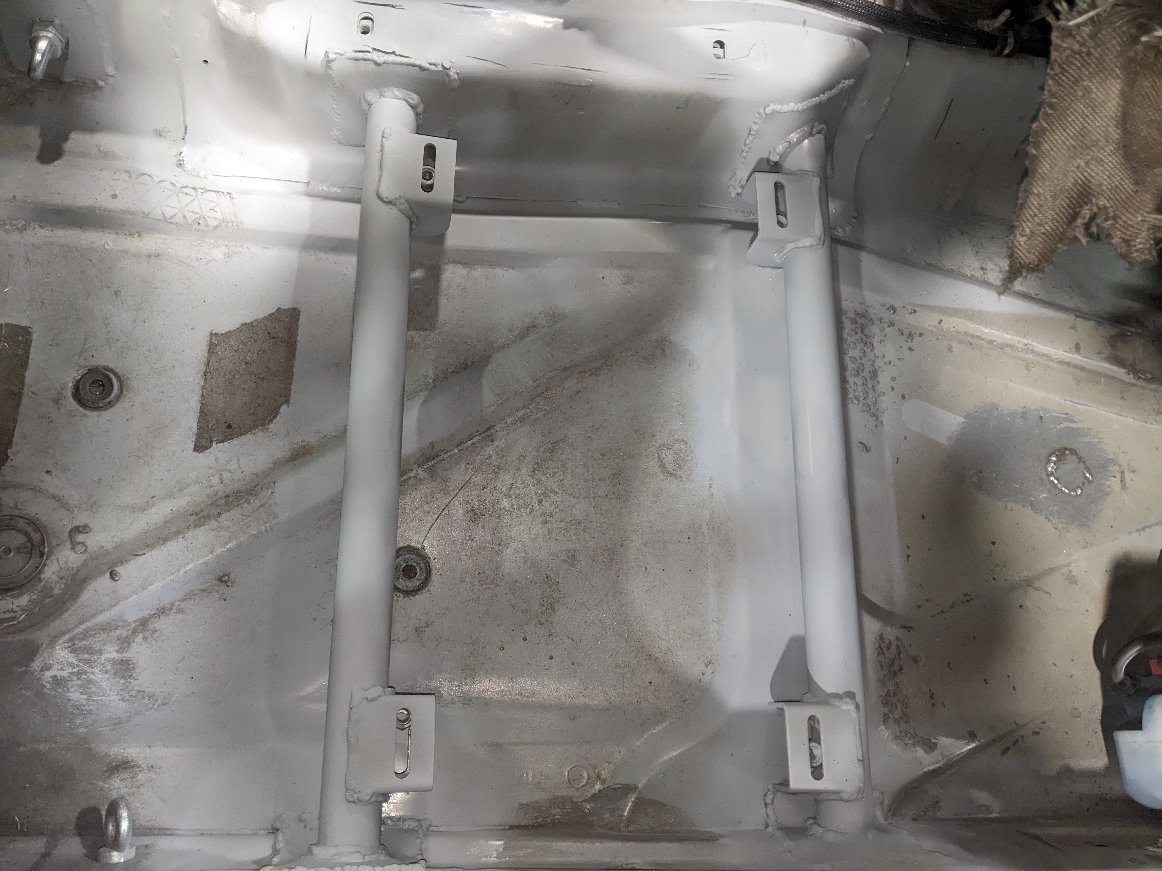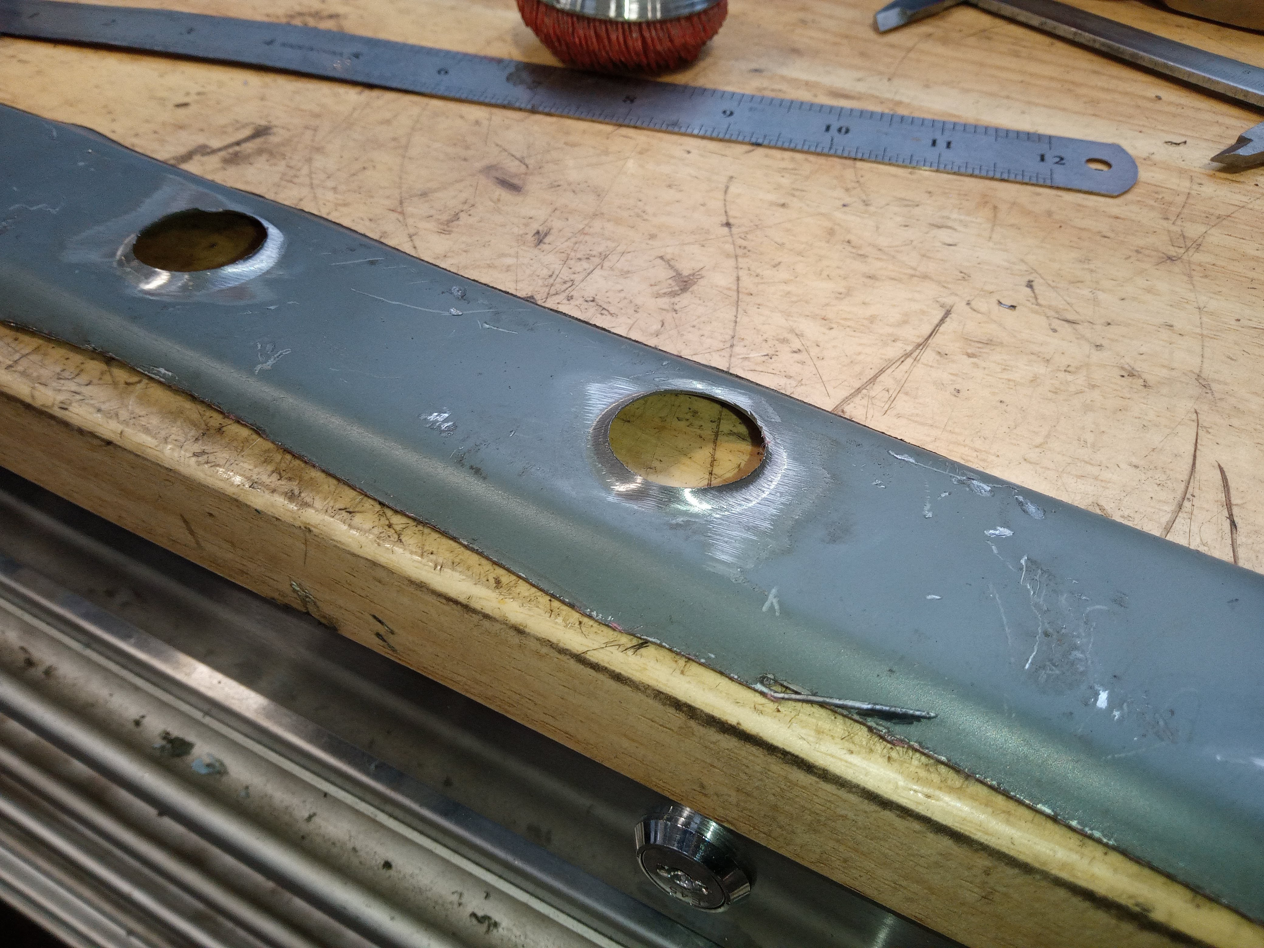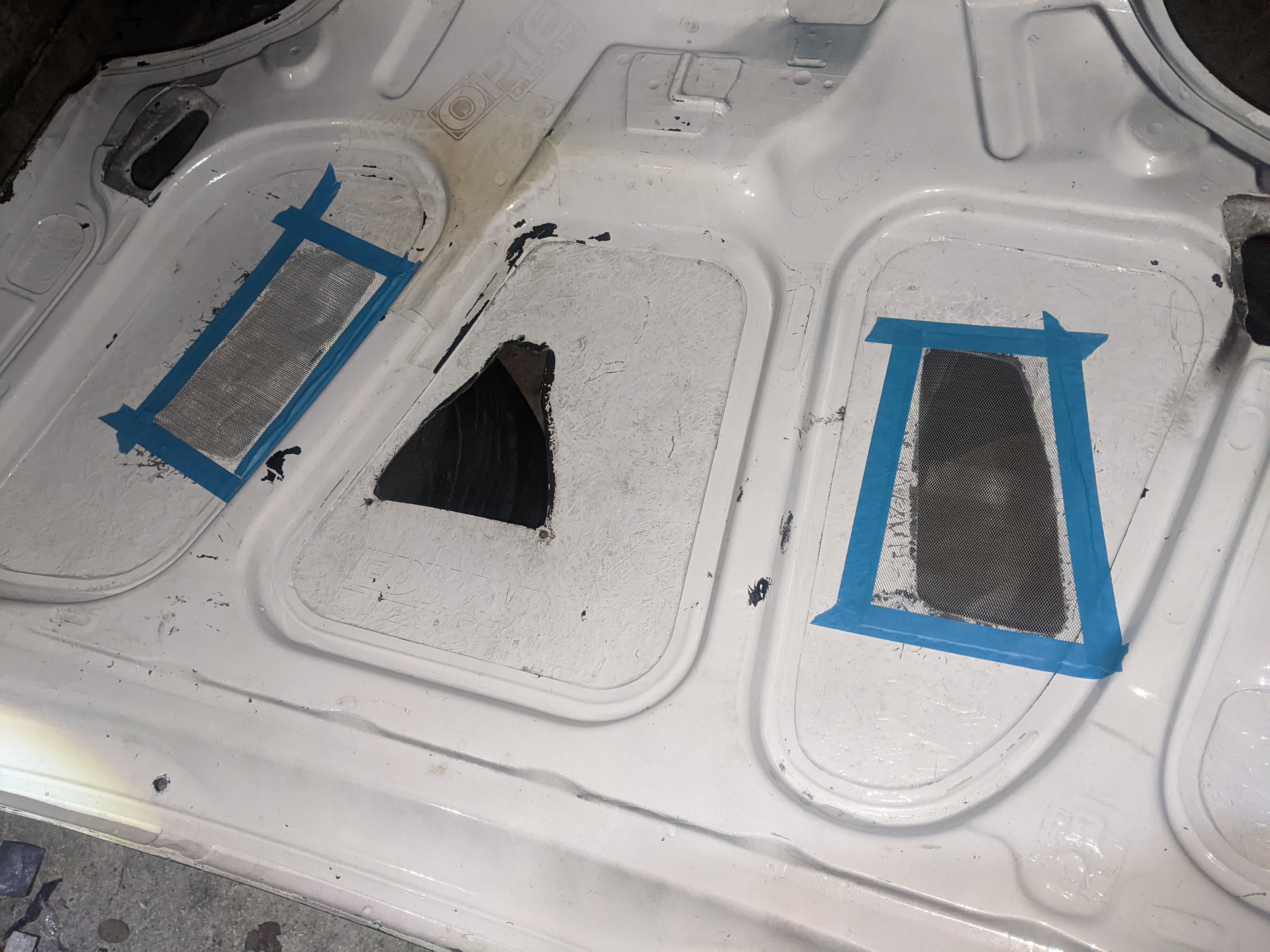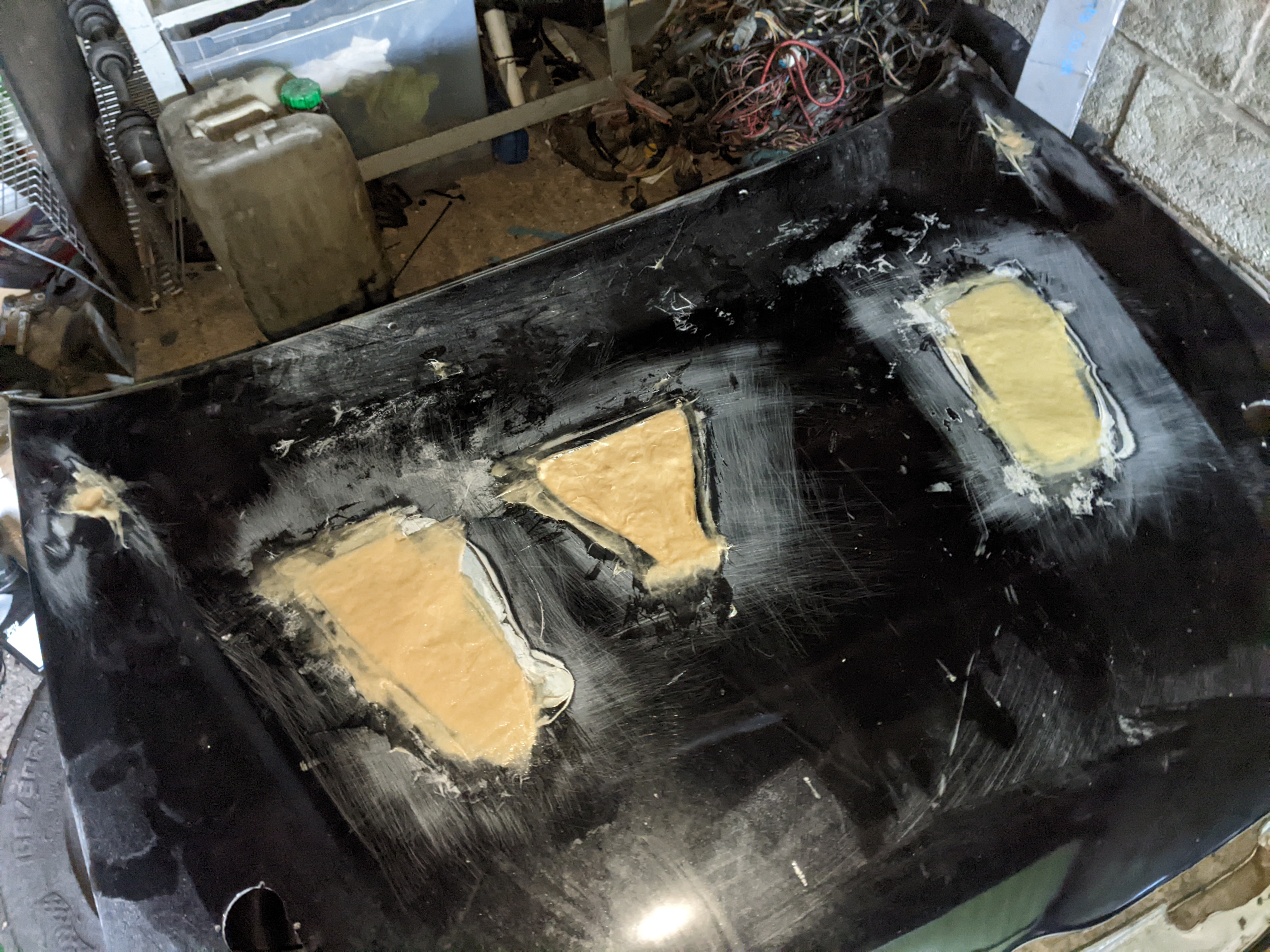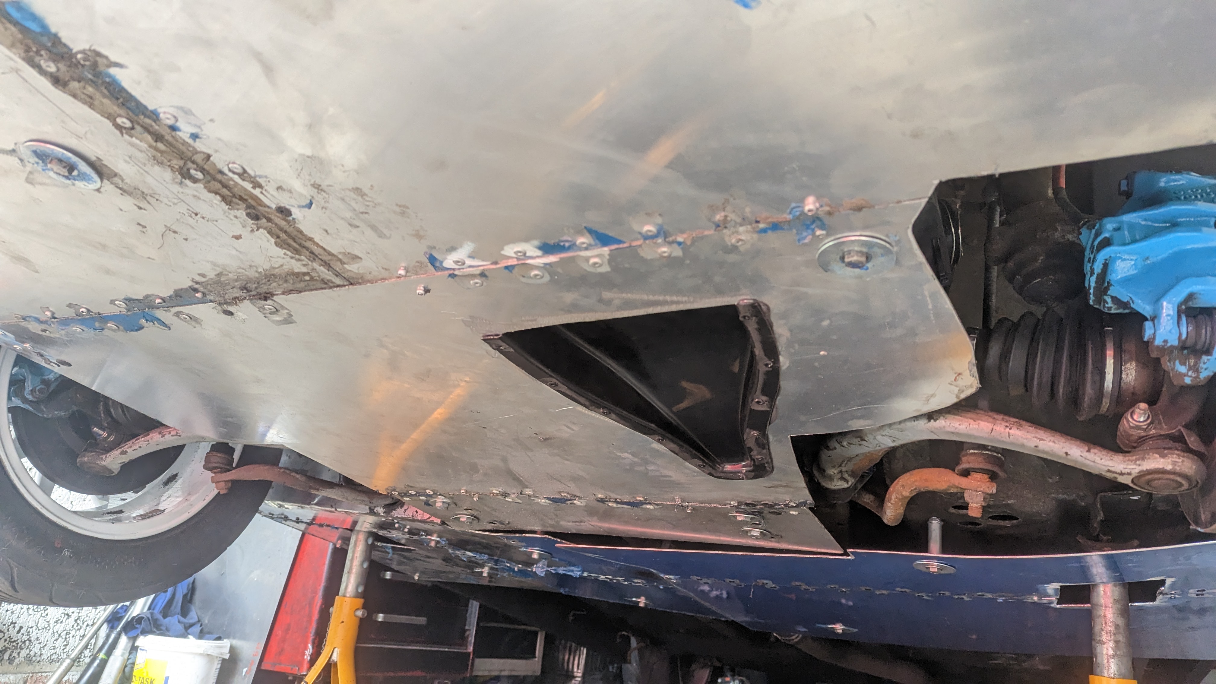 Before putting the new engine in I wanted to do some fab on the engine bay while treating the rust and doing some streghtening too: