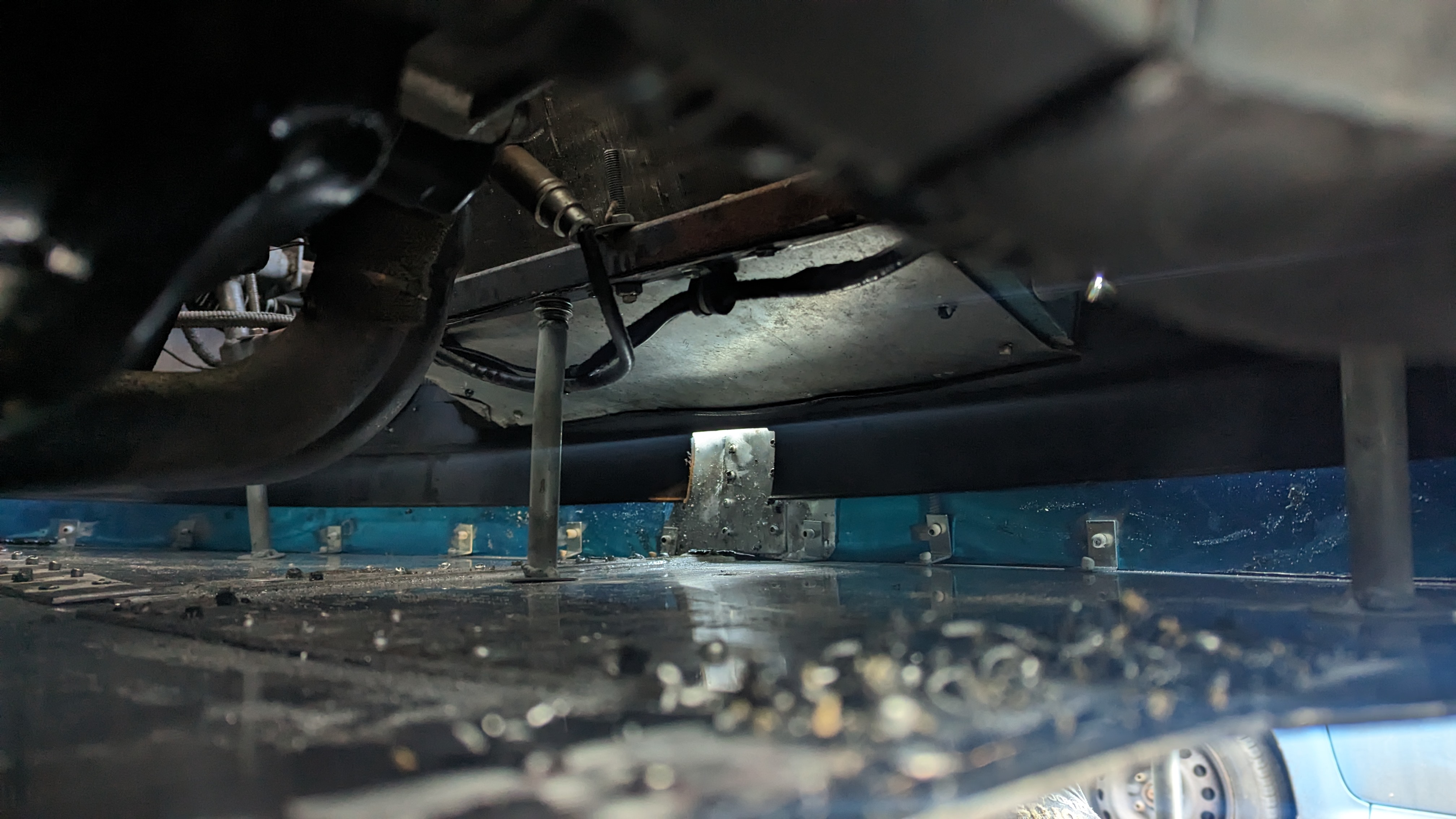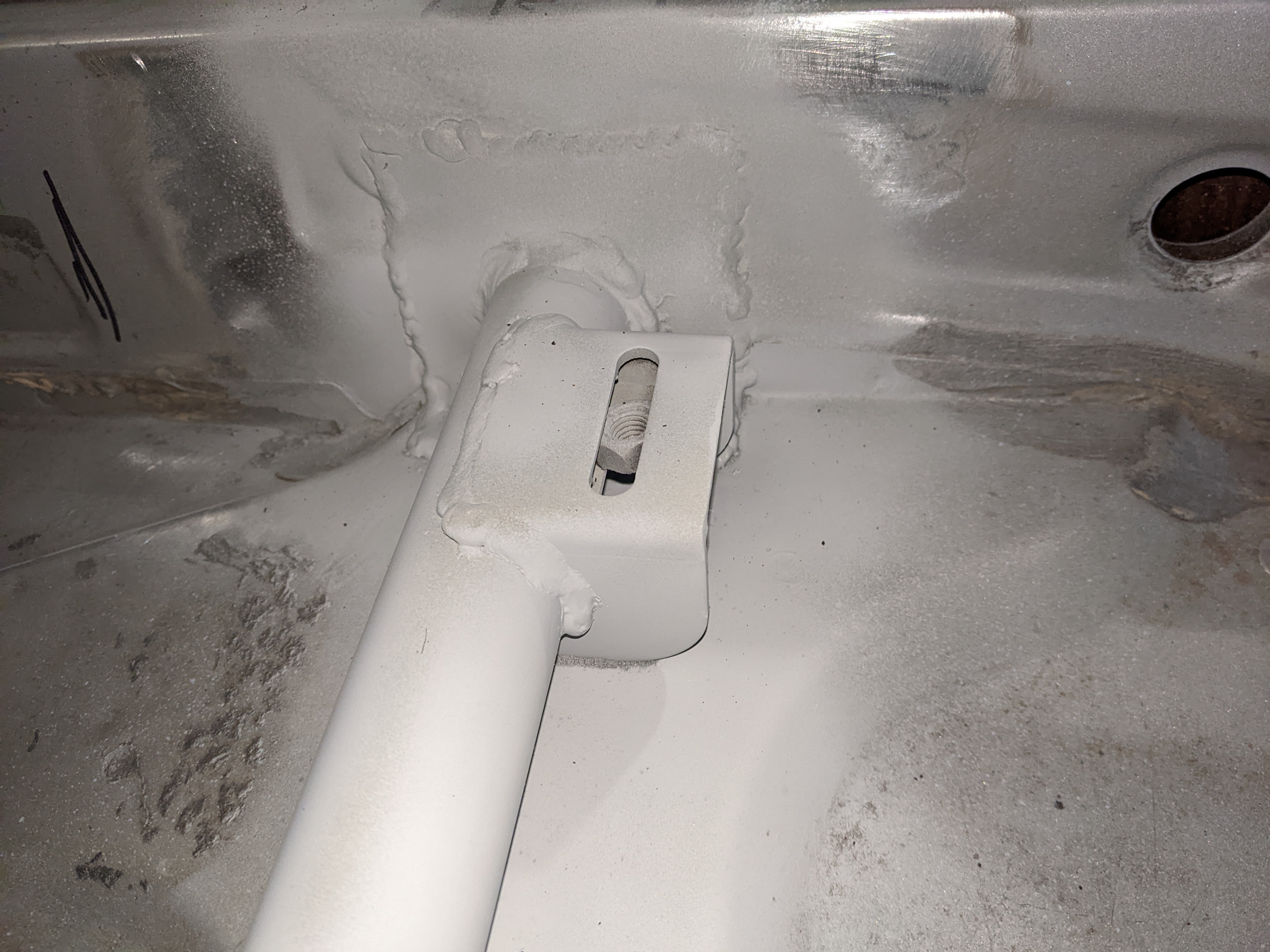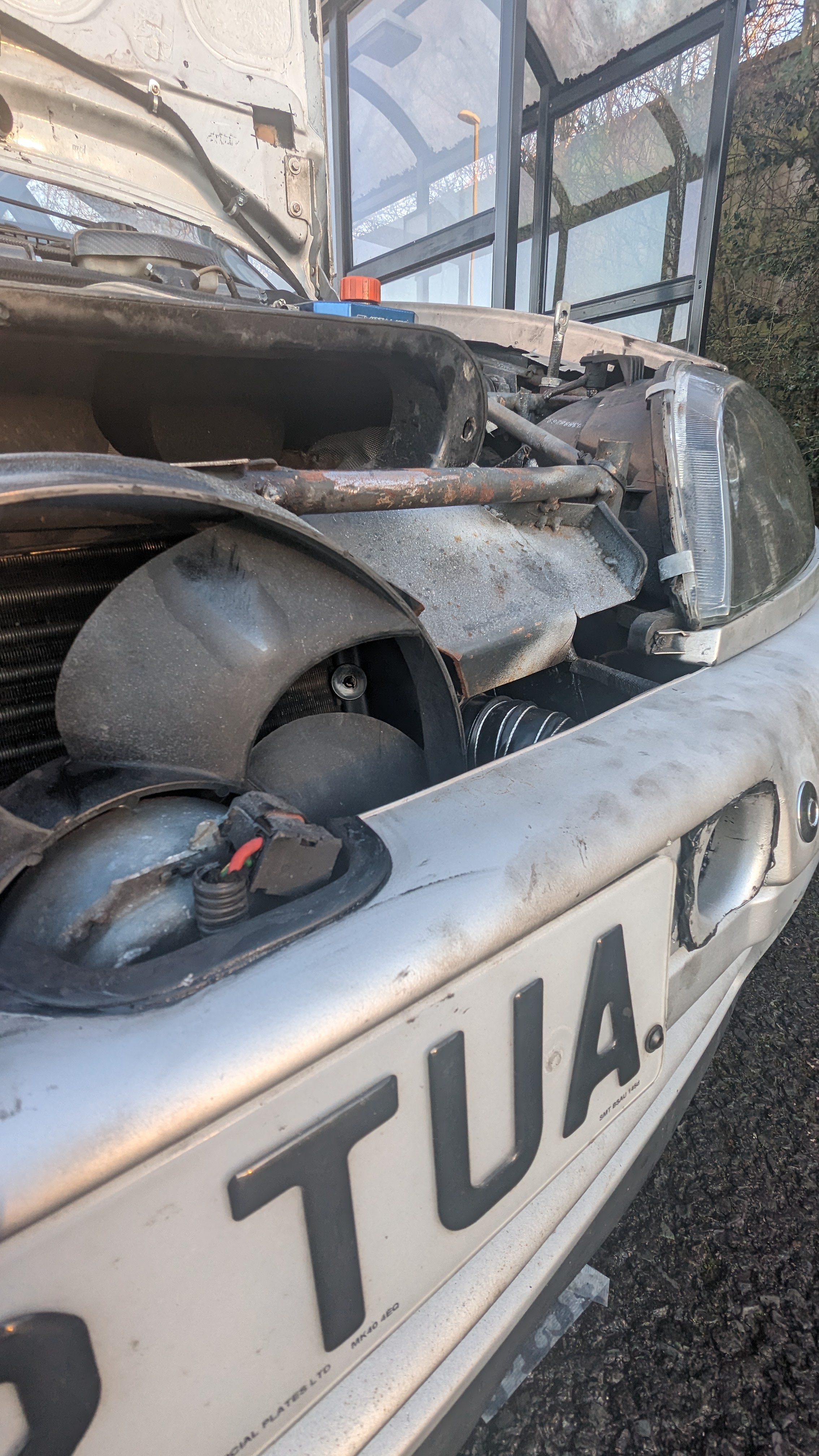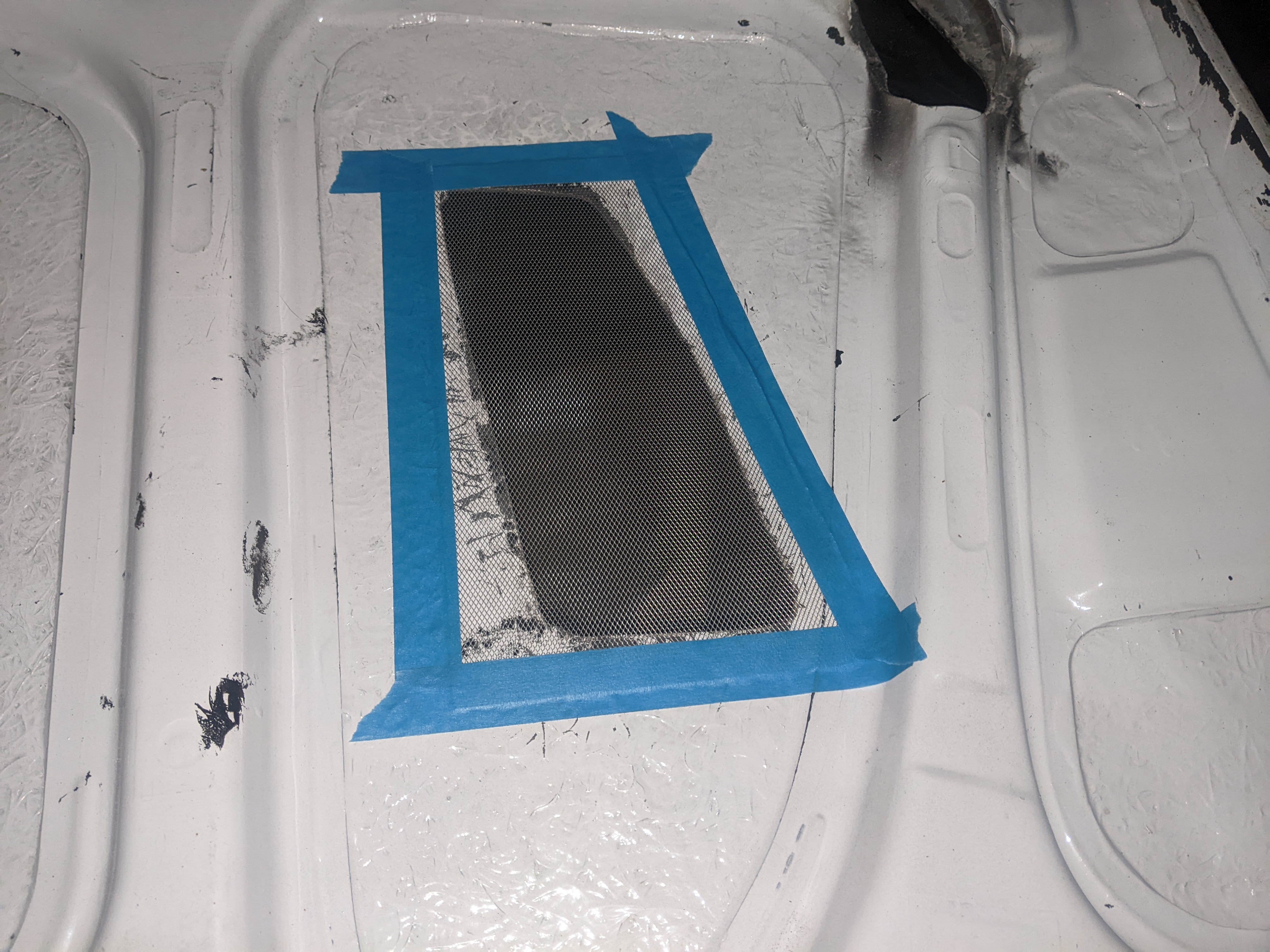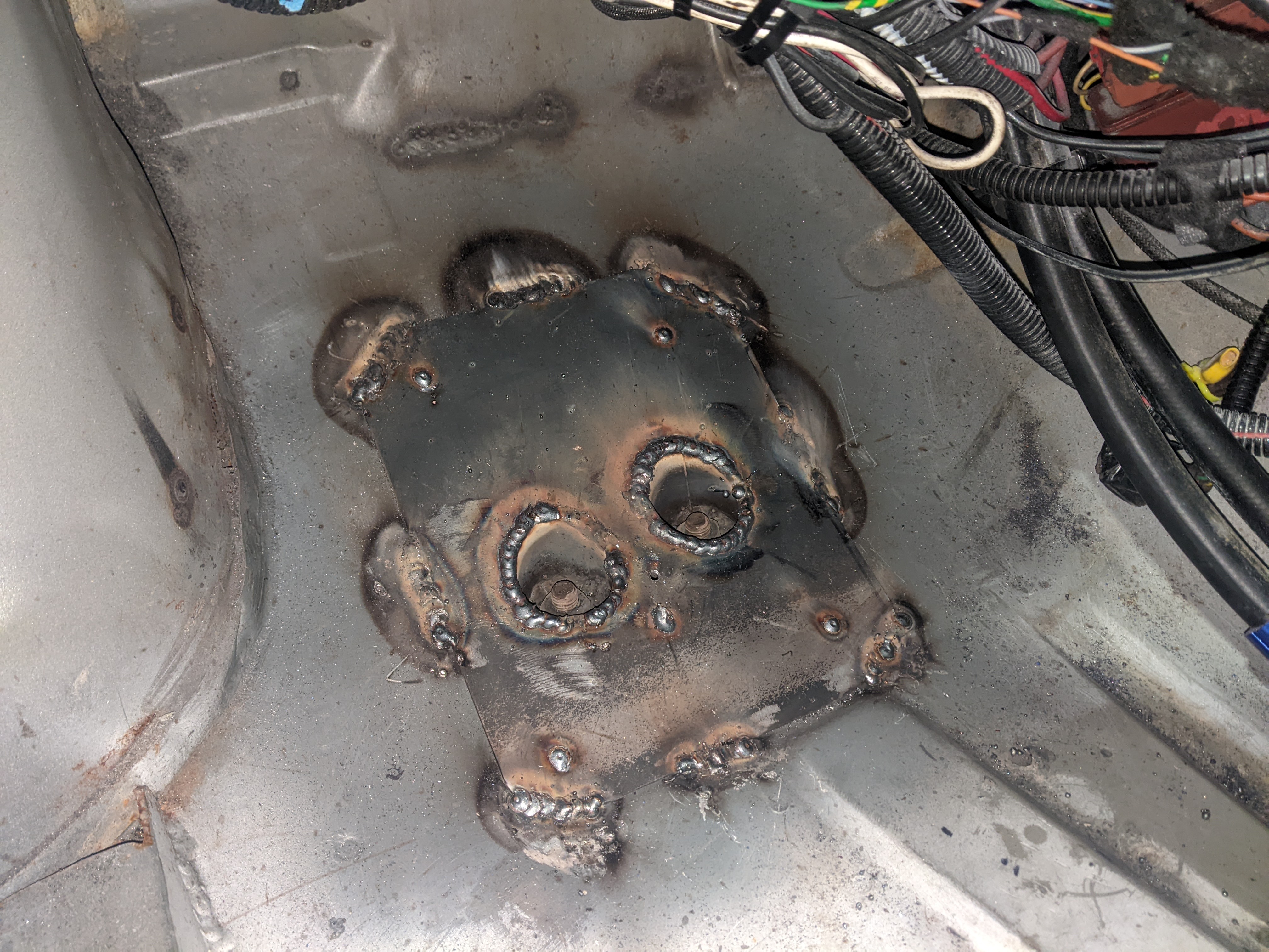 Before putting the new engine in I wanted to do some fab on the engine bay while treating the rust and doing some streghtening too: