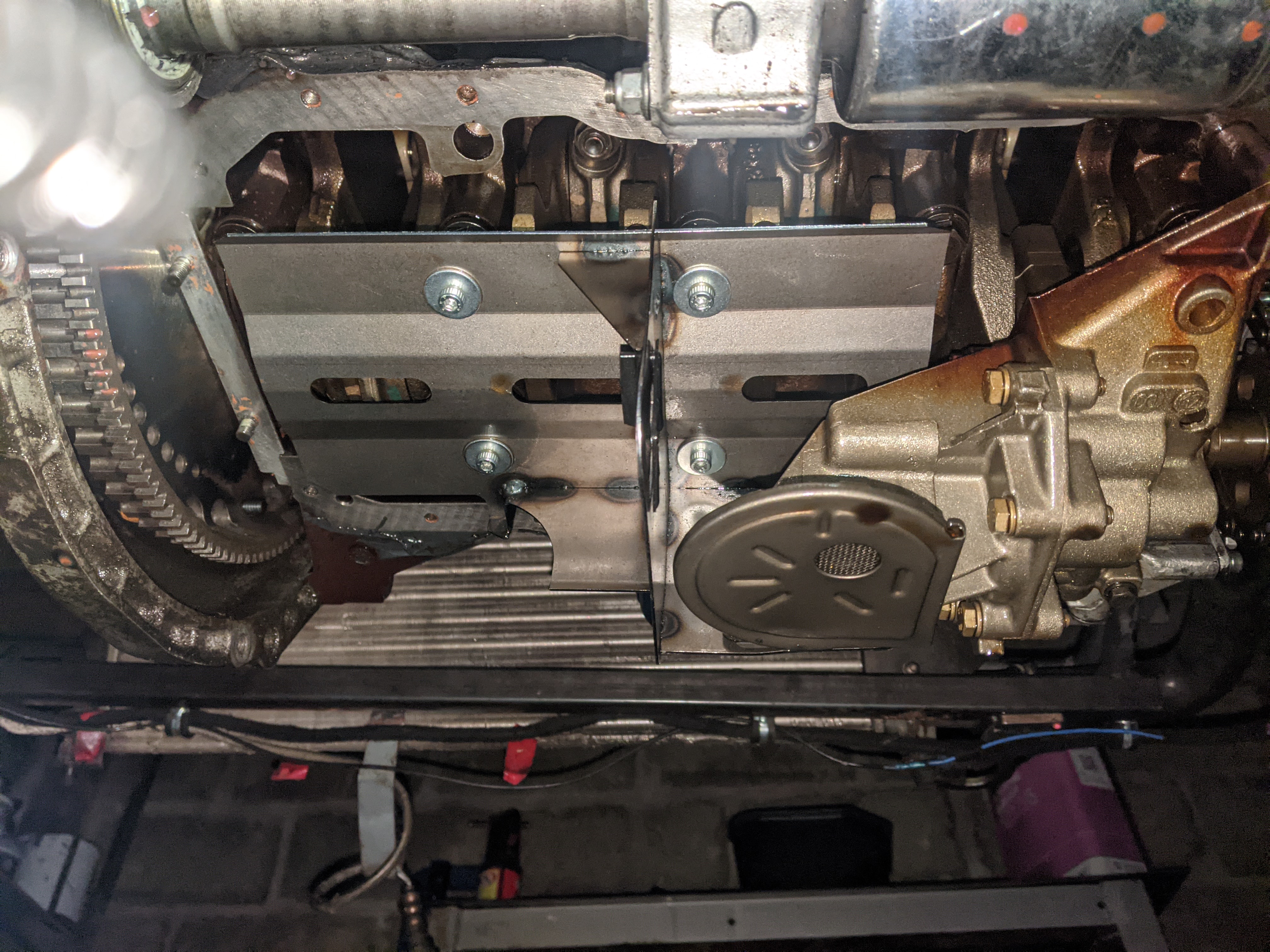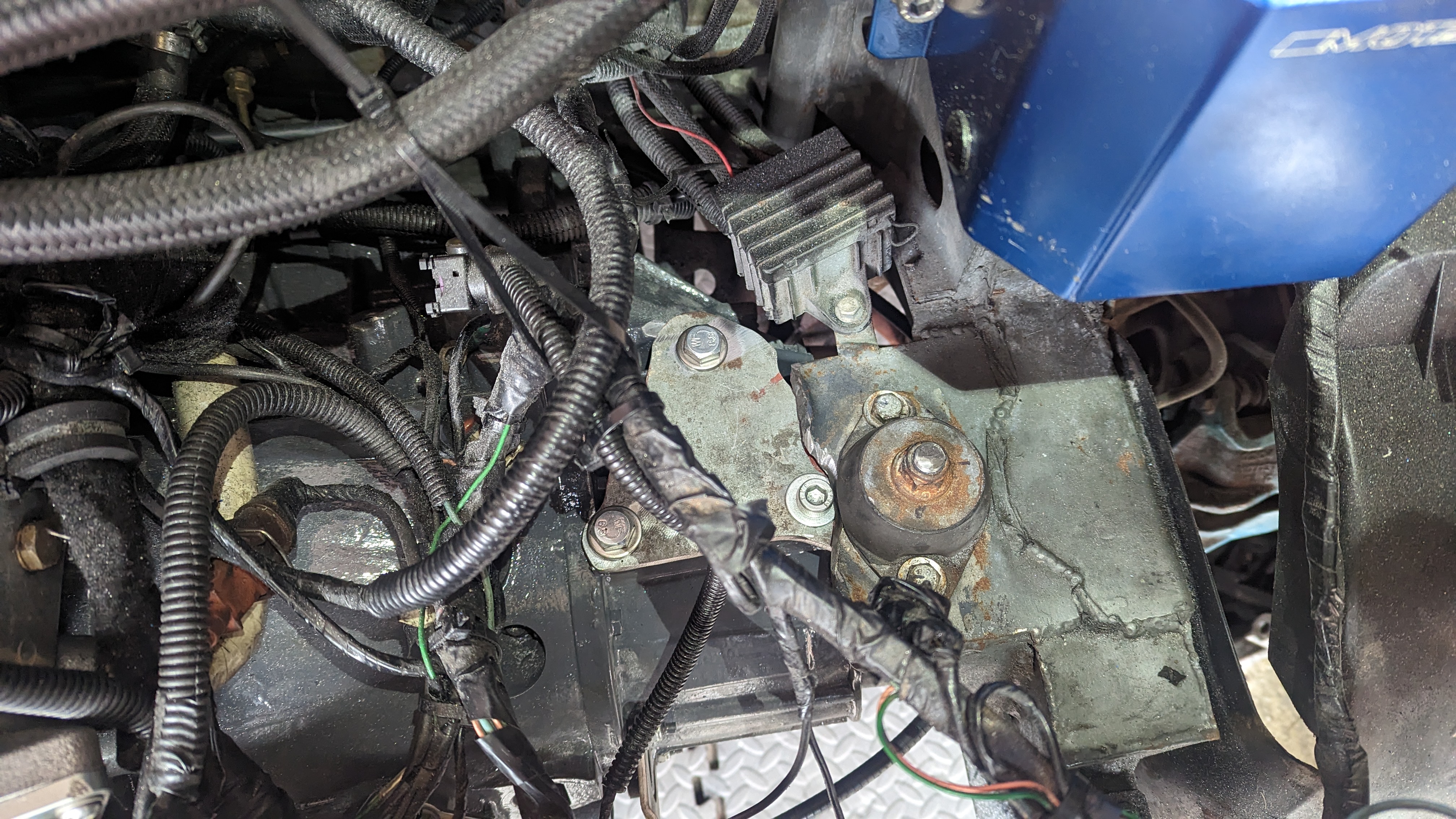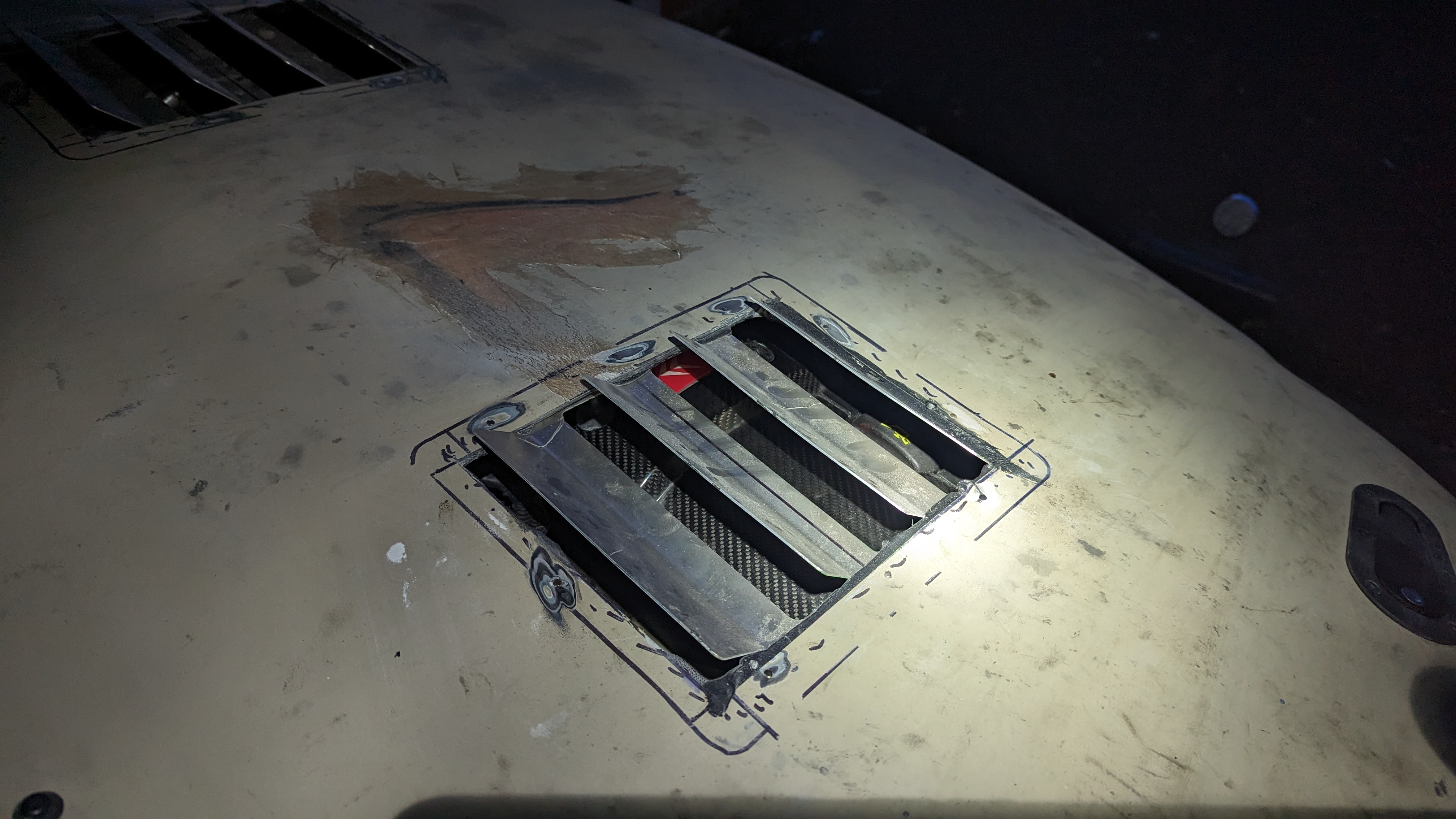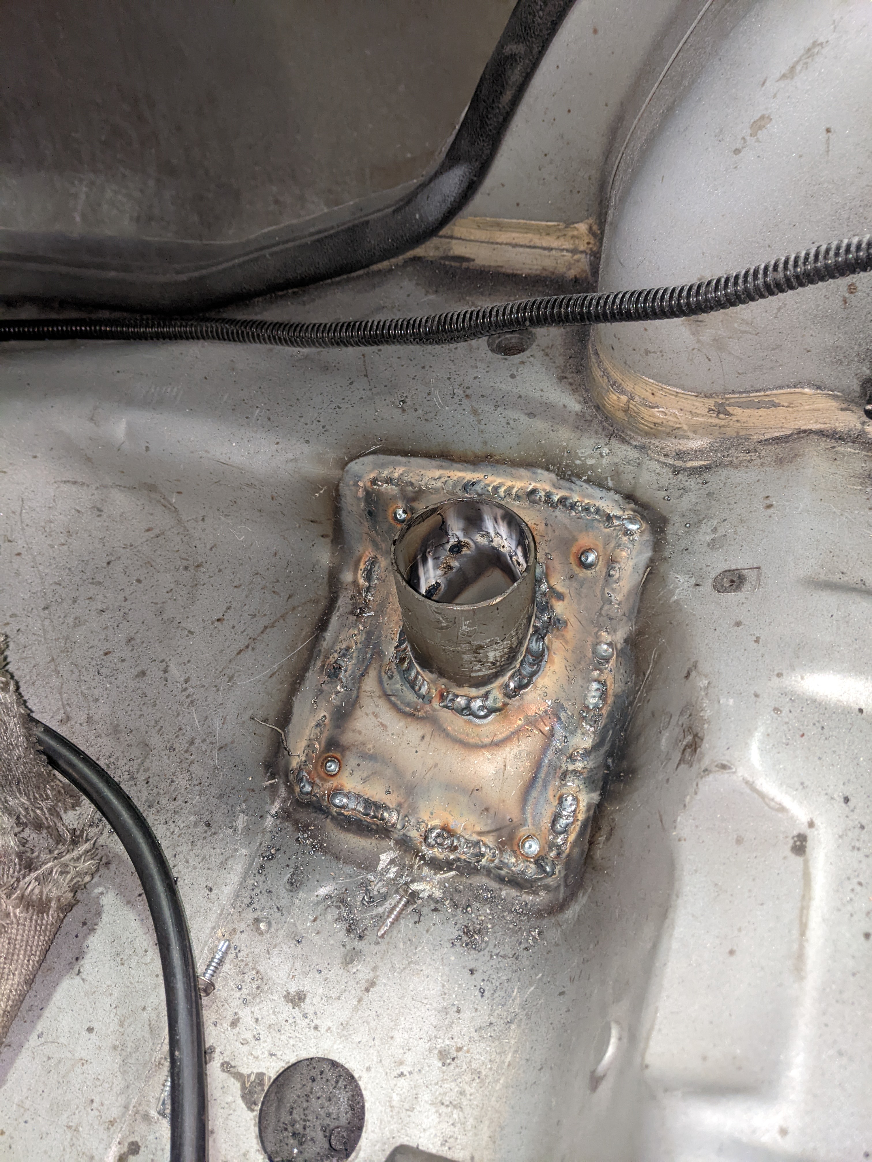 Before putting the new engine in I wanted to do some fab on the engine bay while treating the rust and doing some streghtening too: