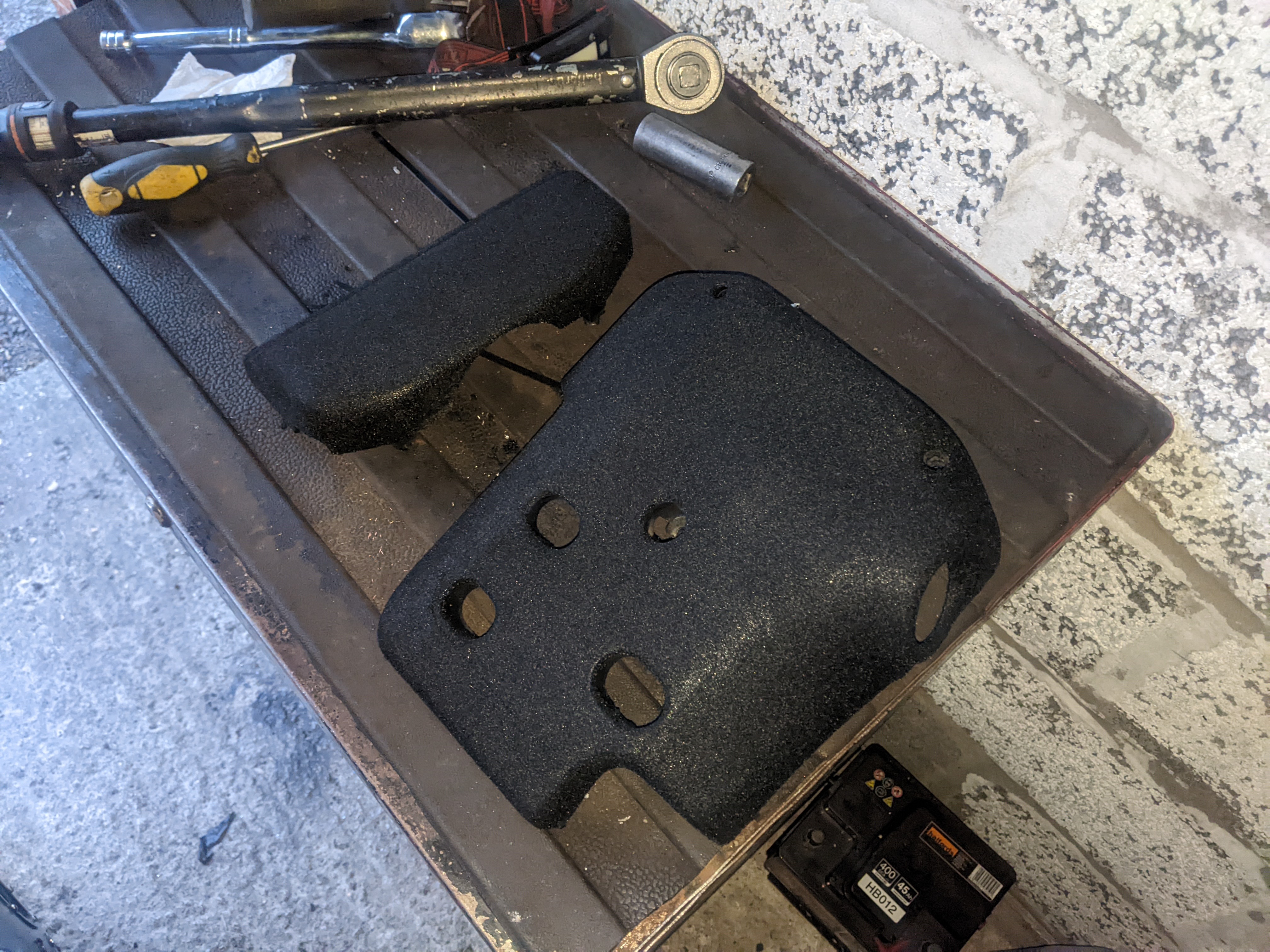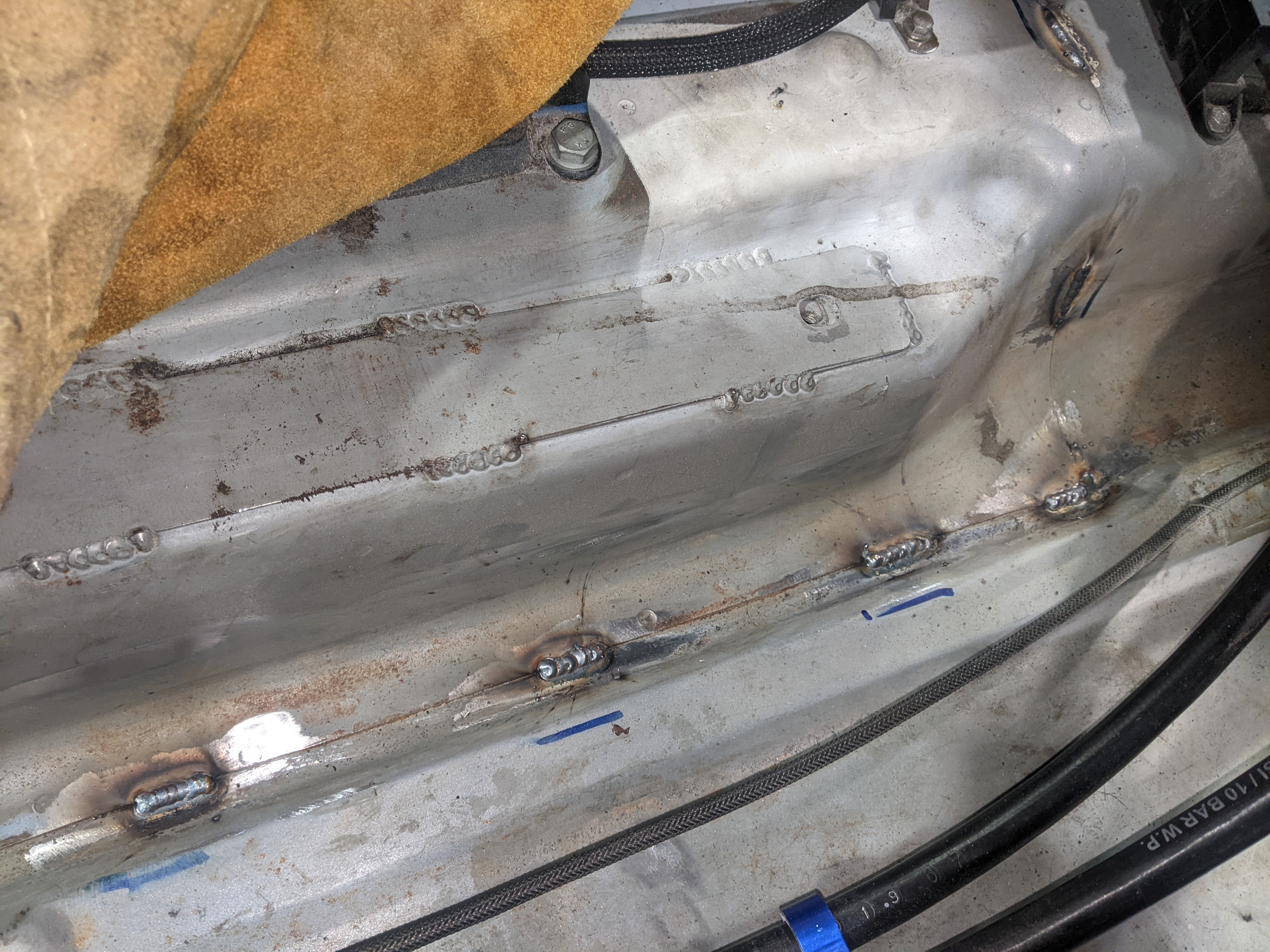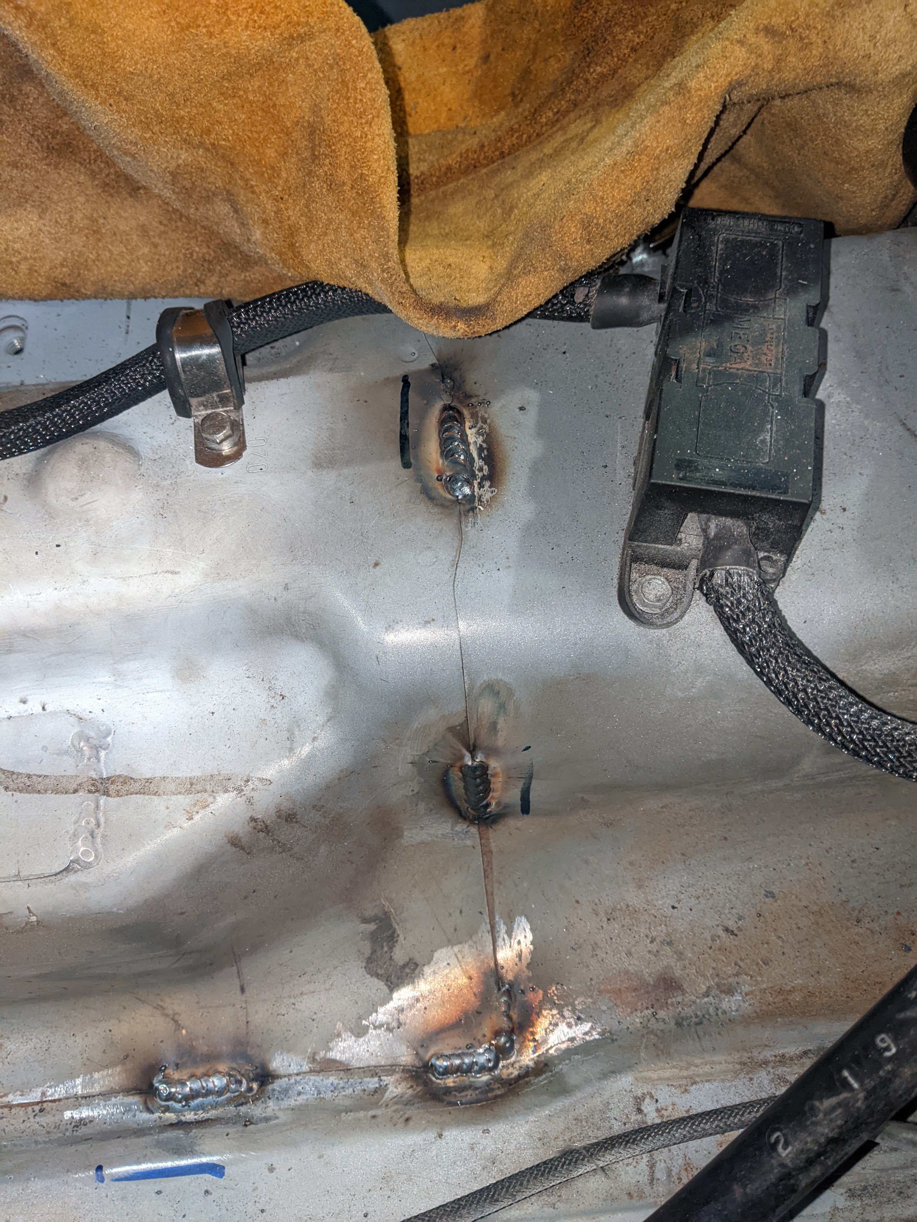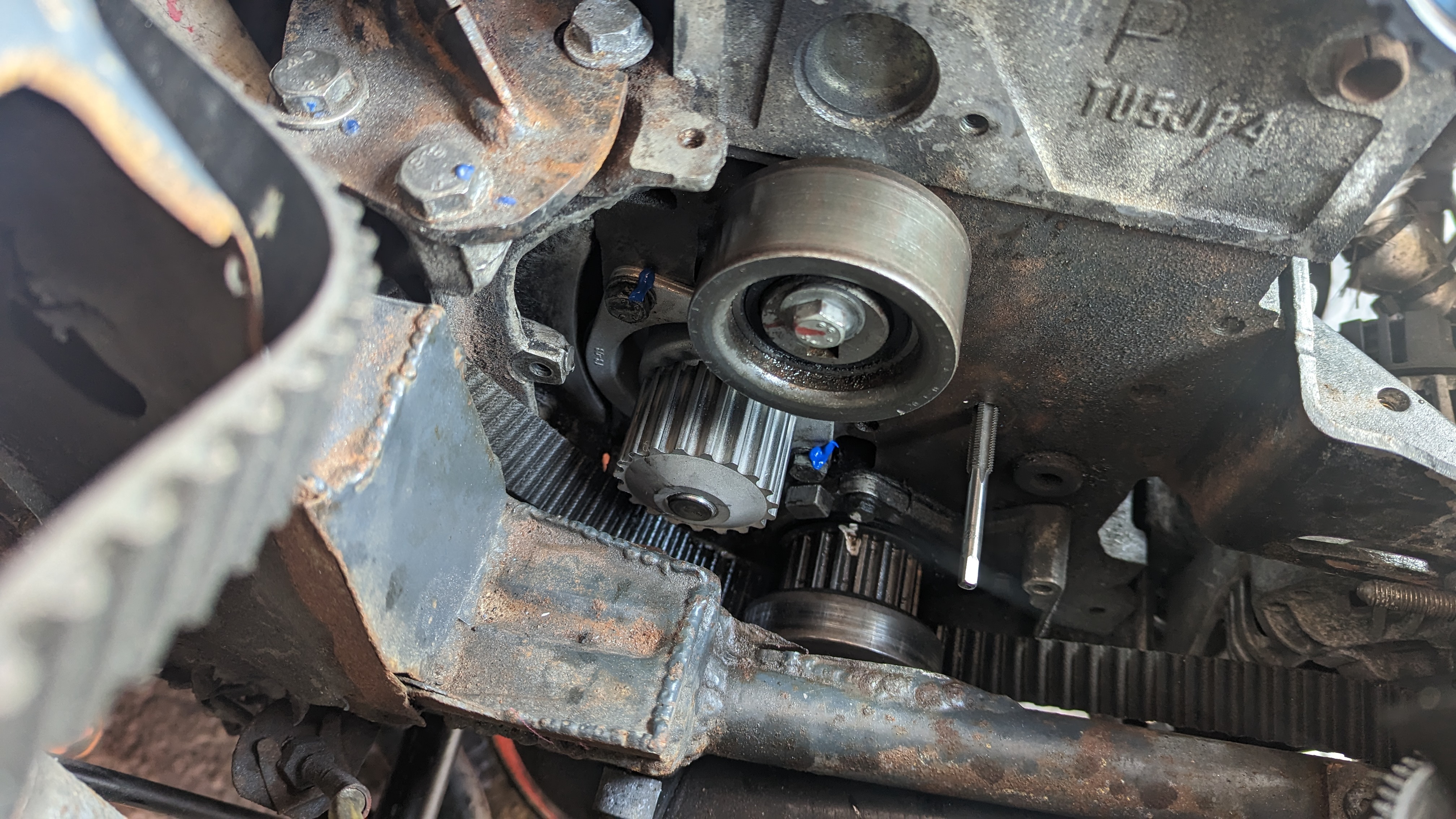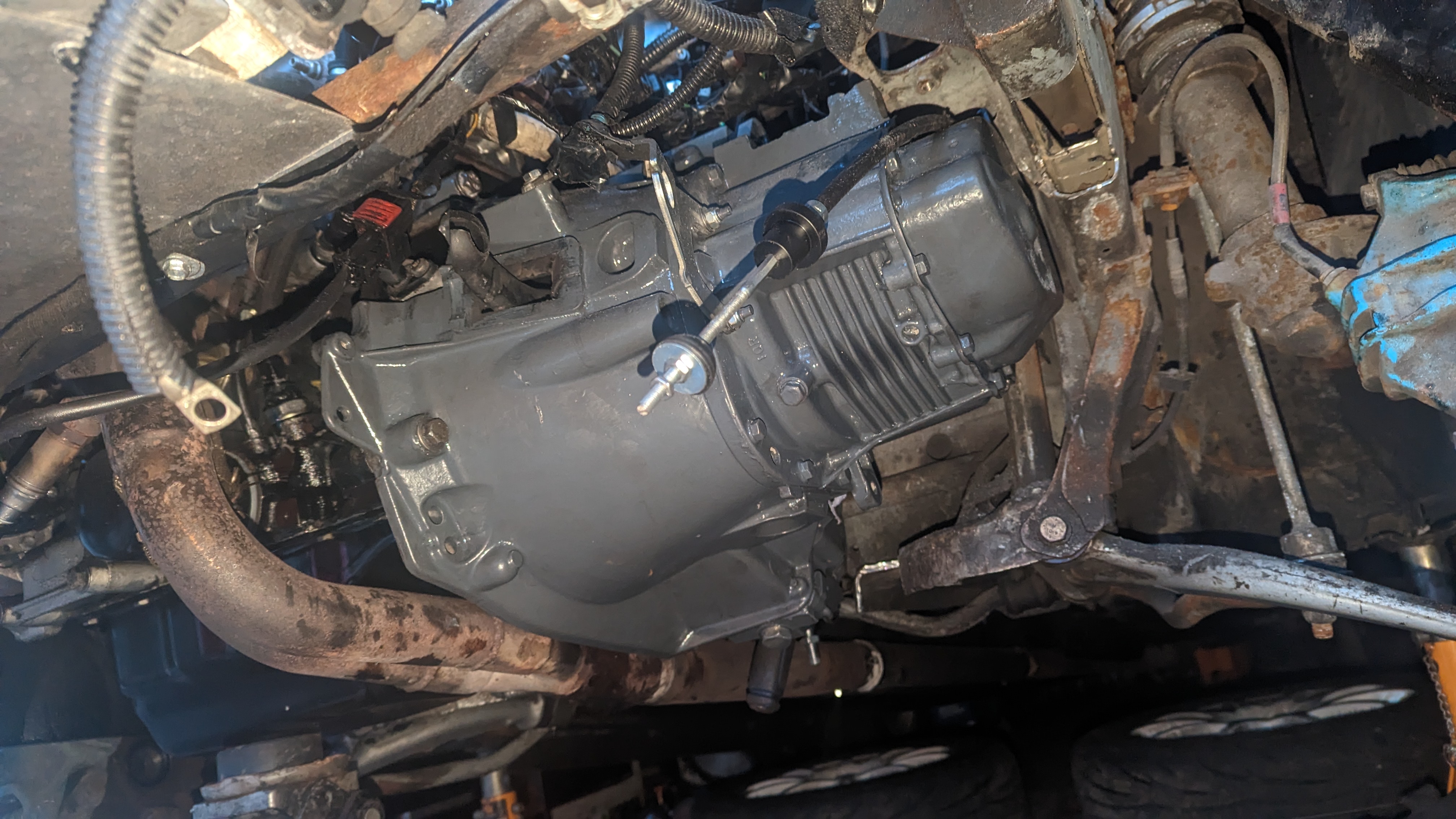 Before putting the new engine in I wanted to do some fab on the engine bay while treating the rust and doing some streghtening too: