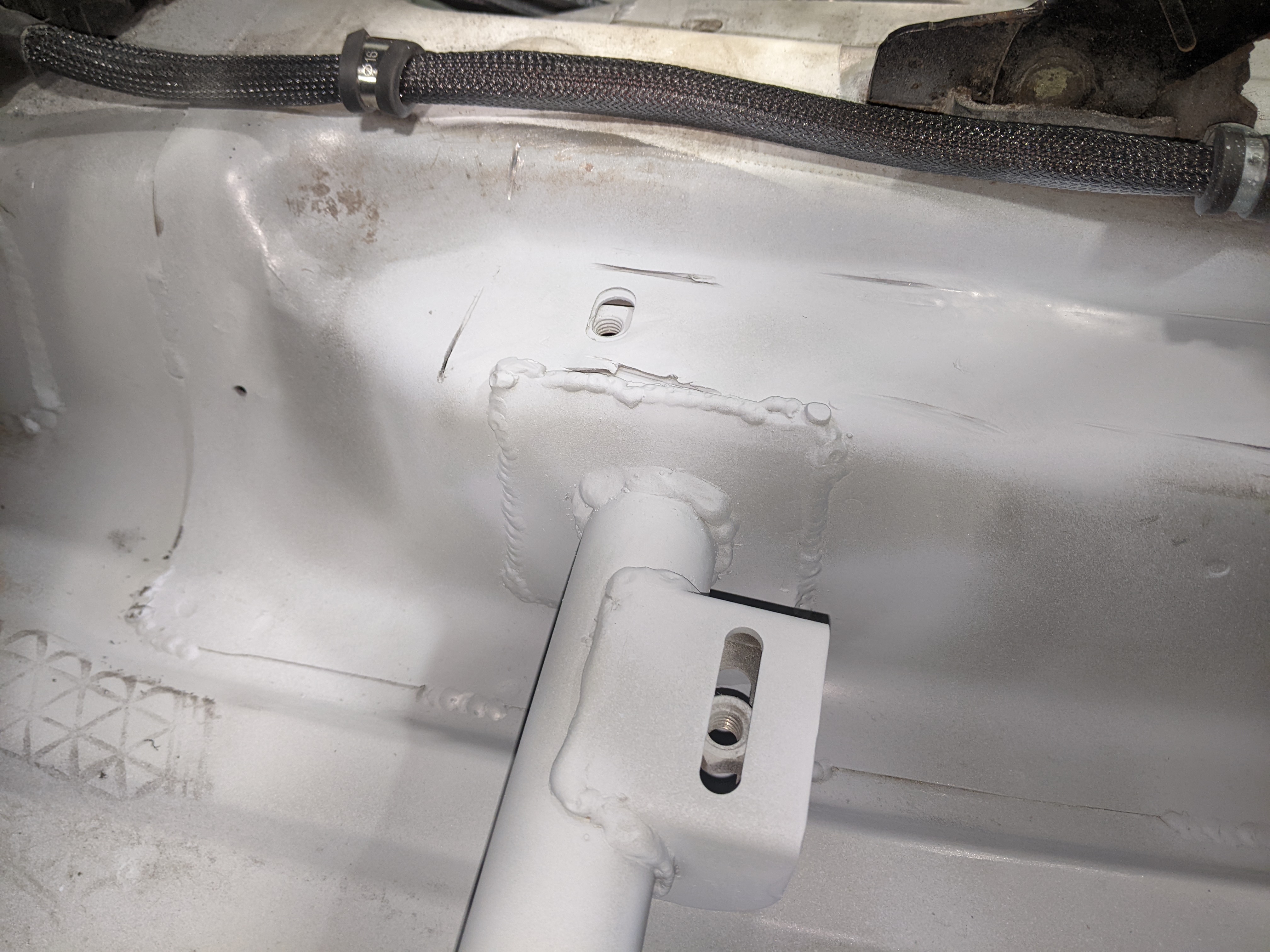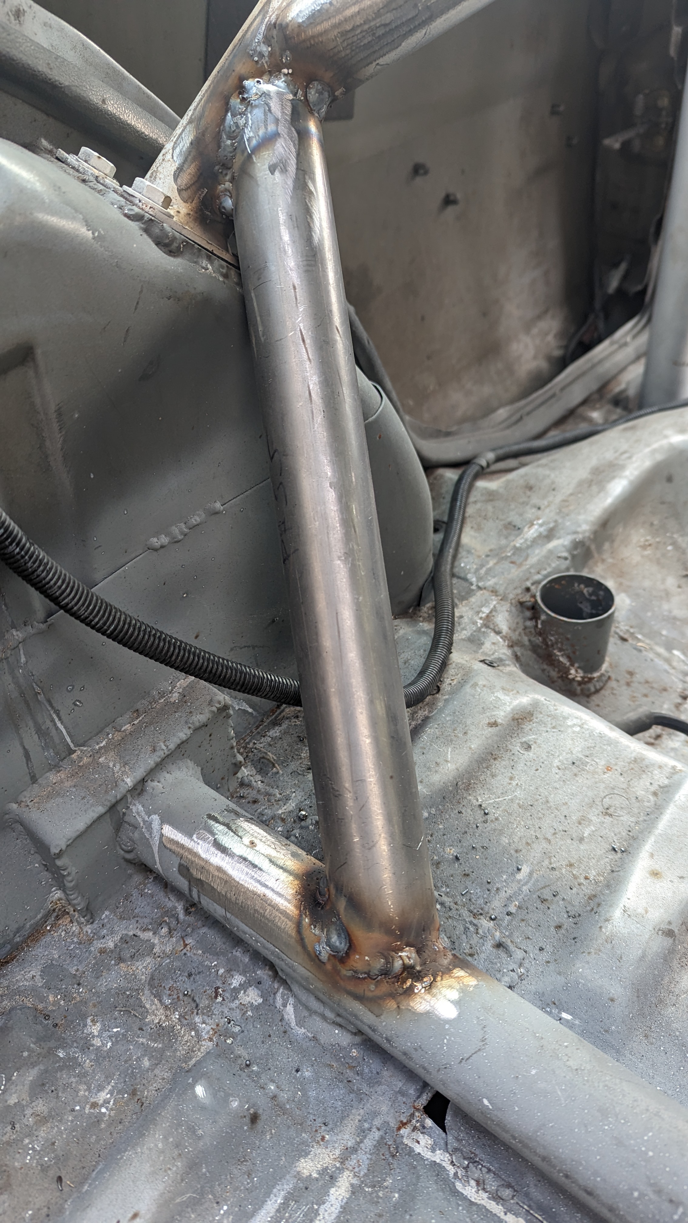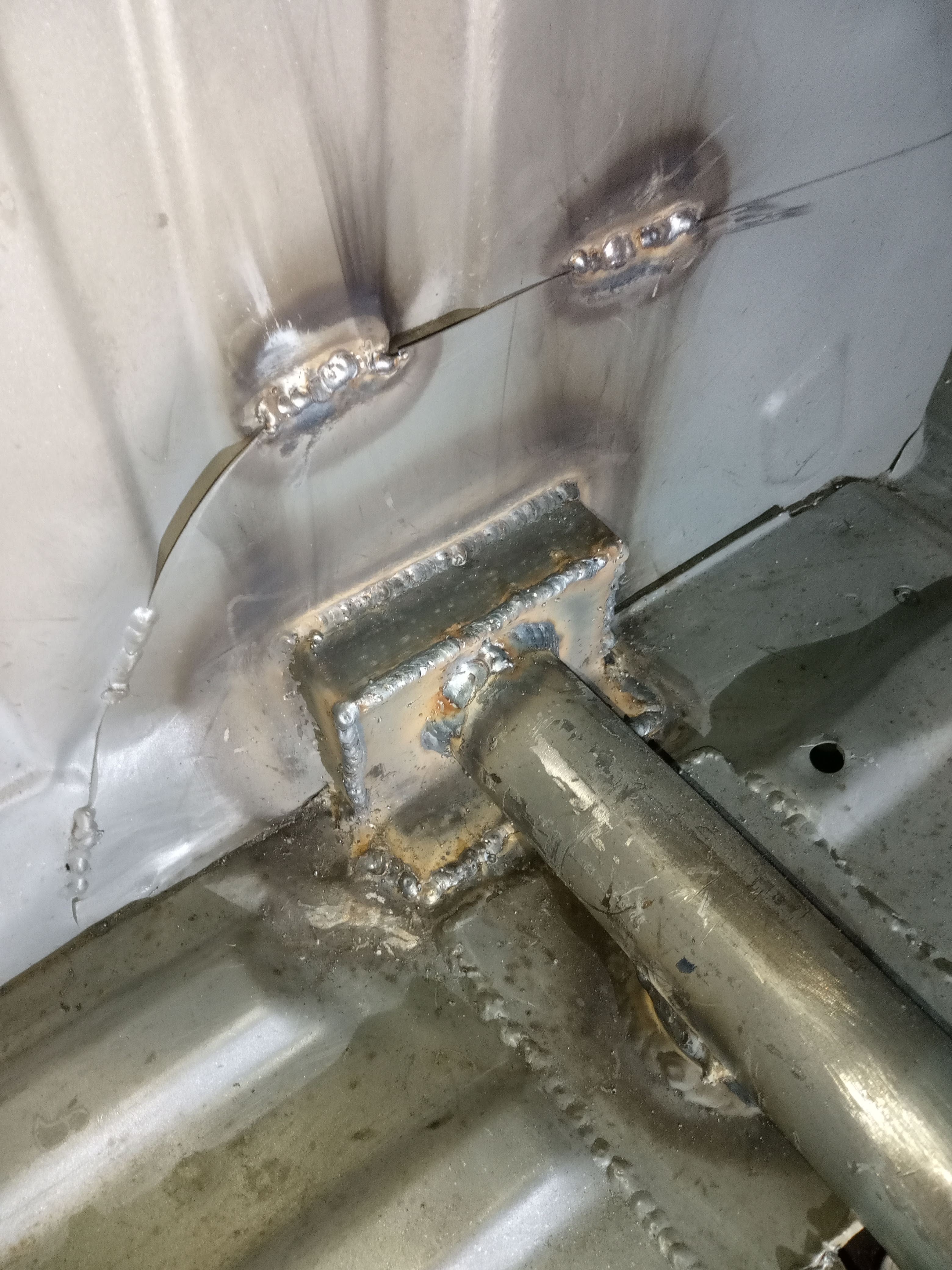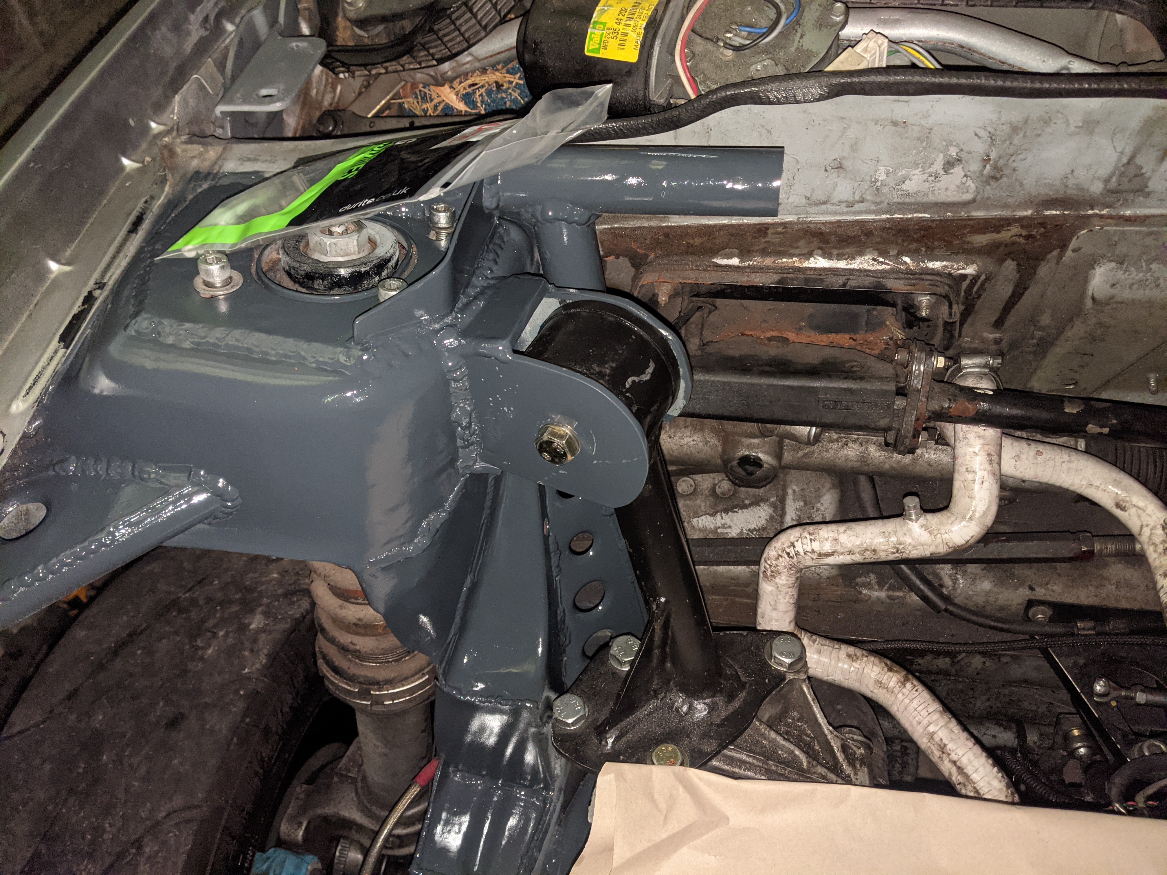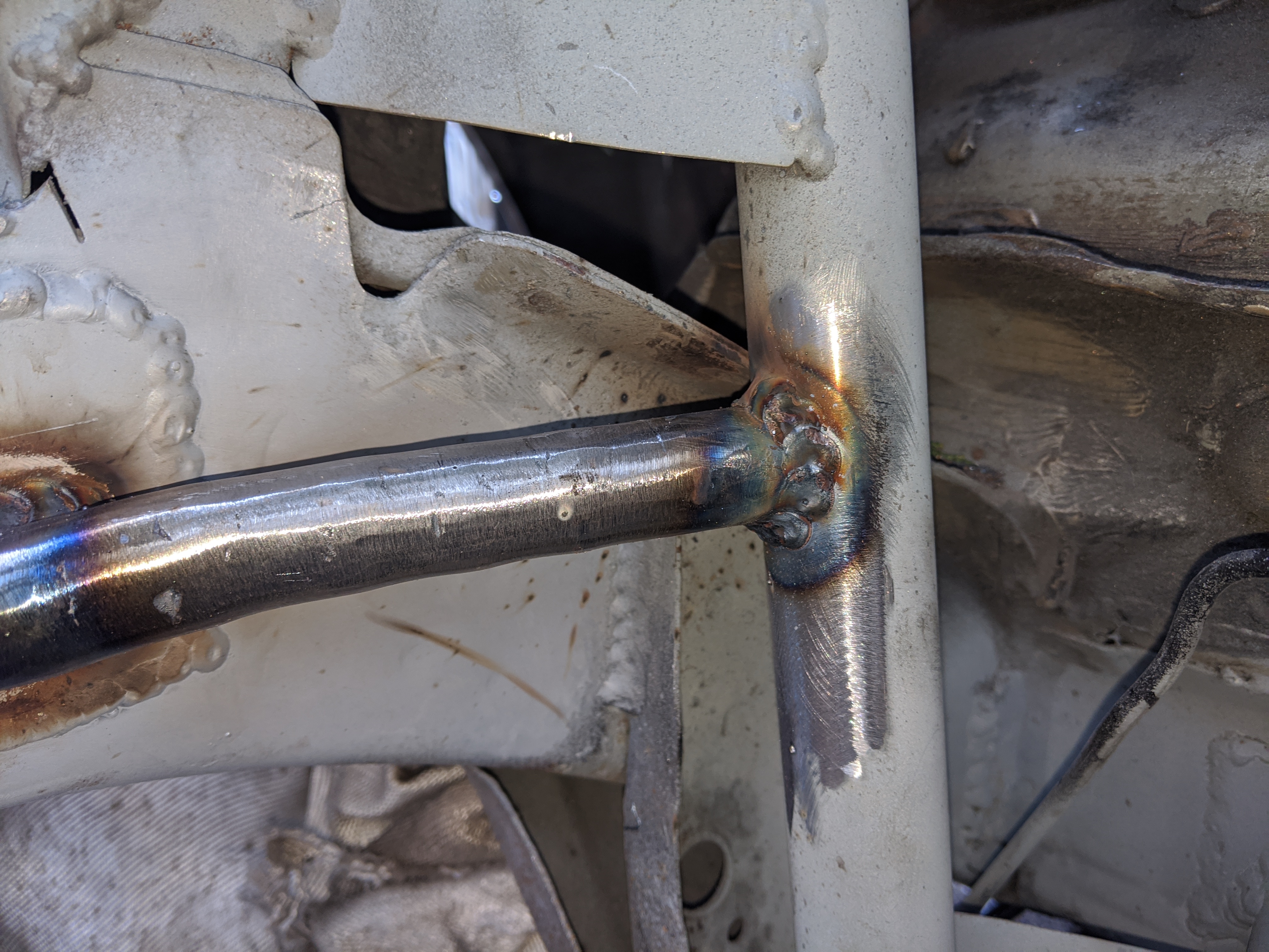 some pictures missing but didn't want a lower brace sticking out of the bottom of the front end so decided to weld on above the chassis leg to do the same job: