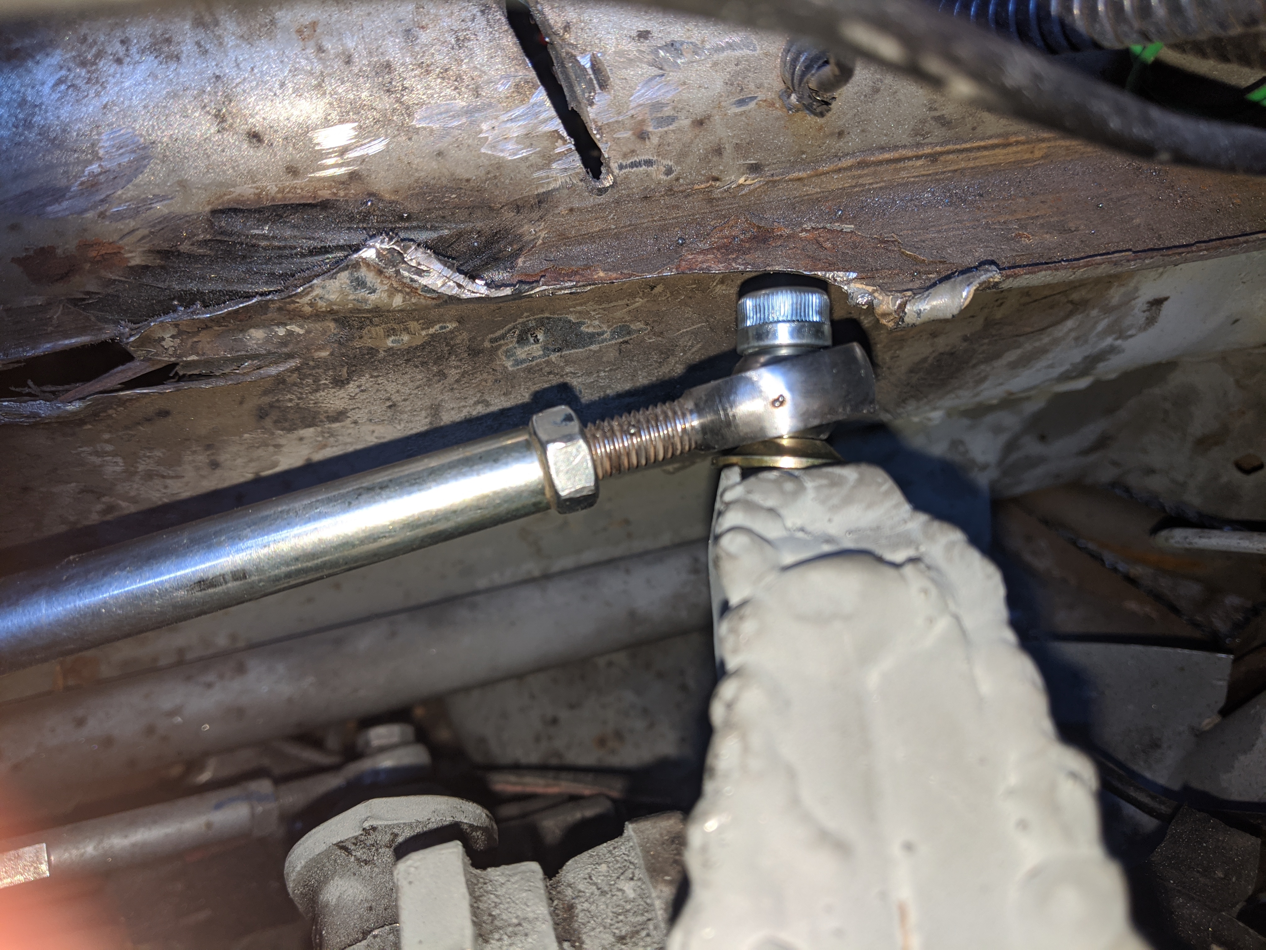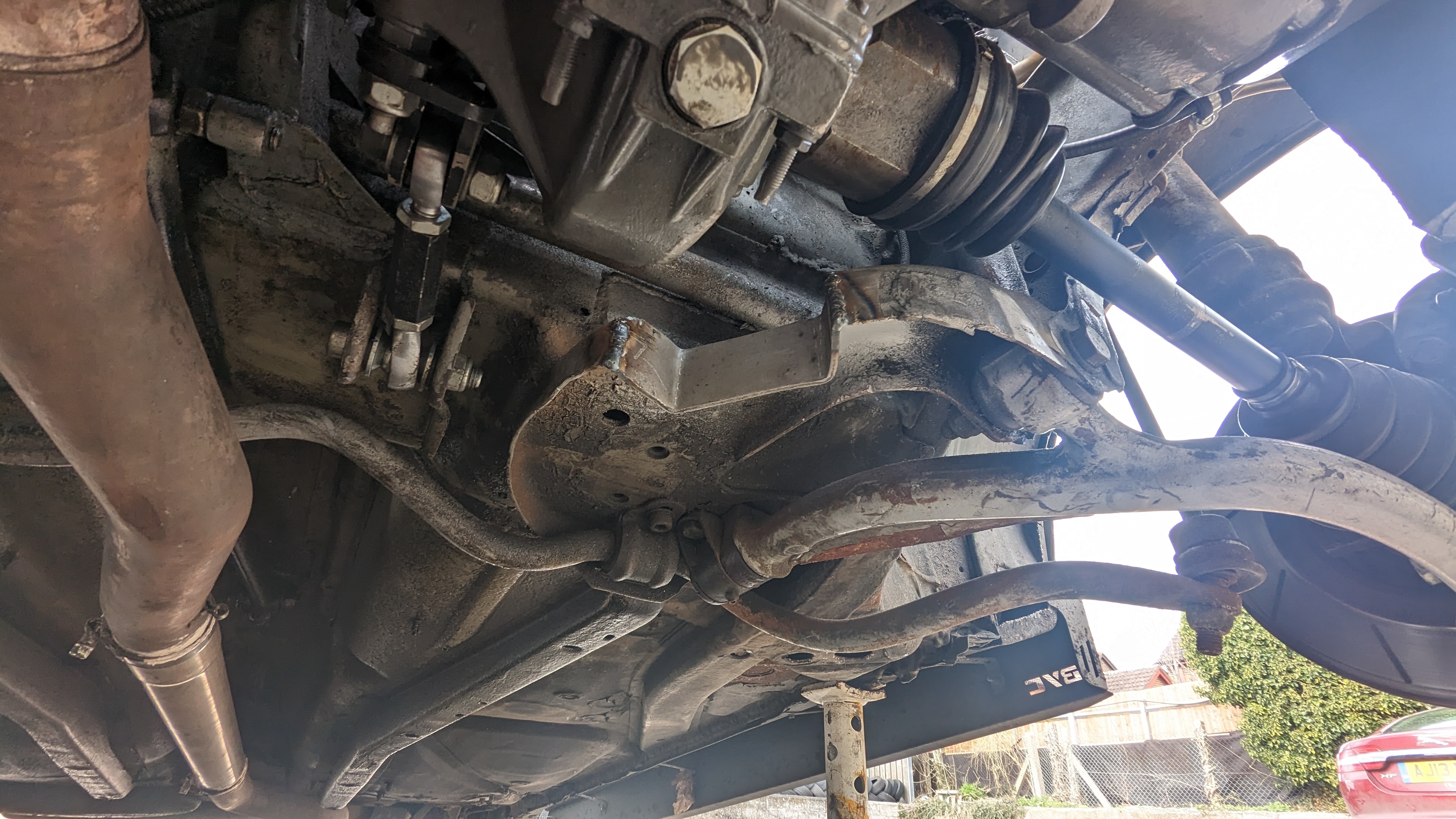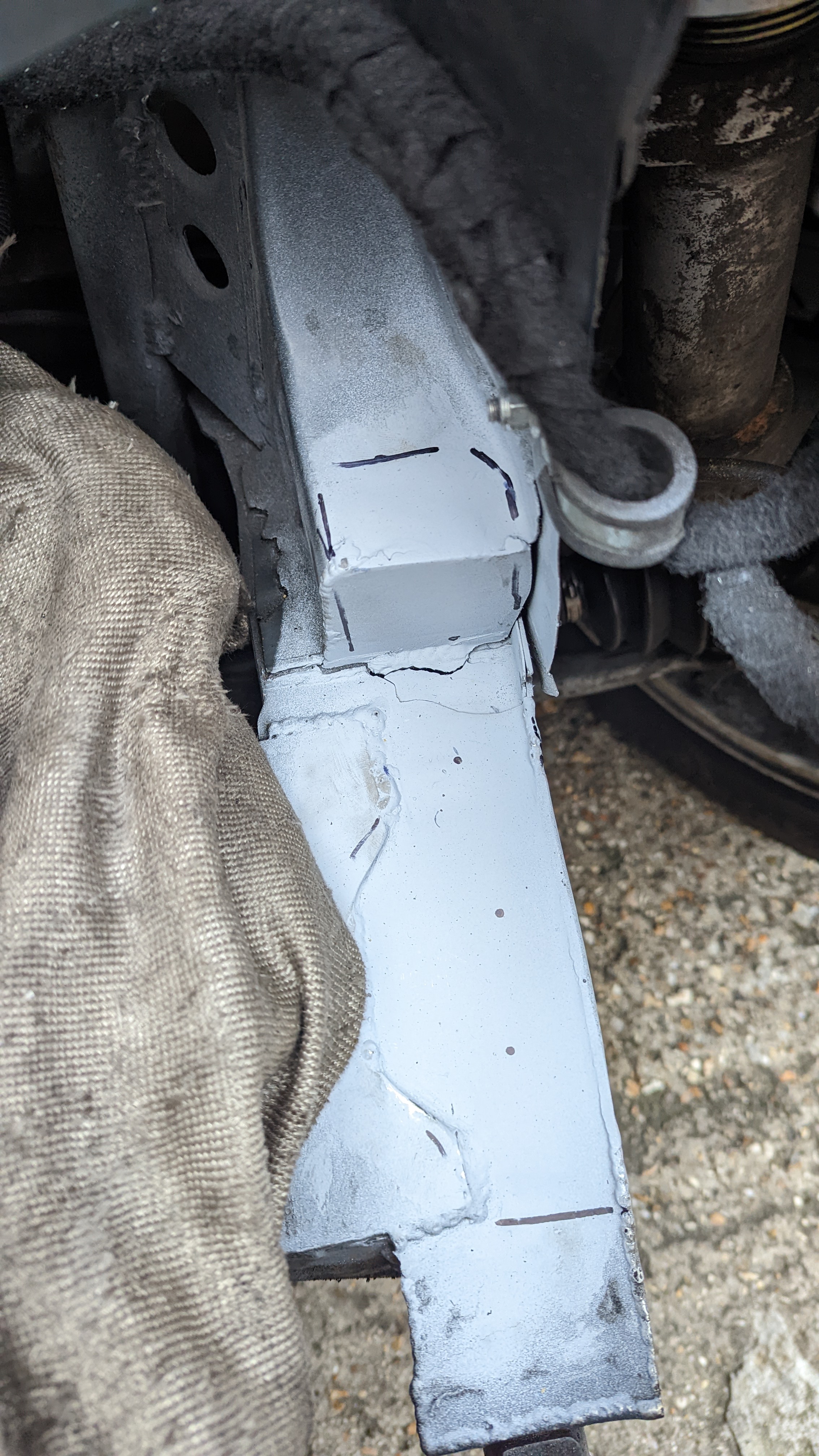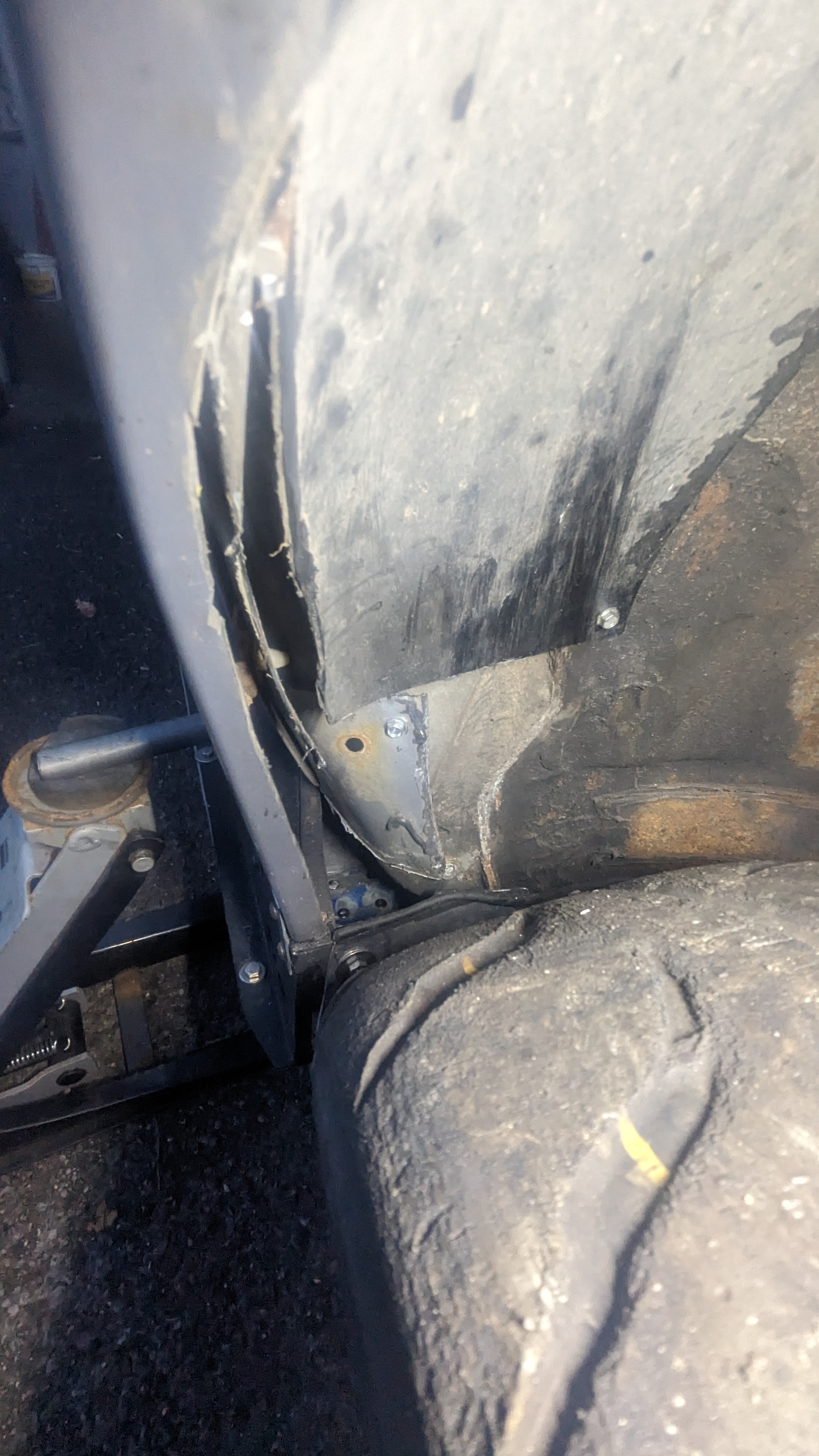 some pictures missing but didn't want a lower brace sticking out of the bottom of the front end so decided to weld on above the chassis leg to do the same job: