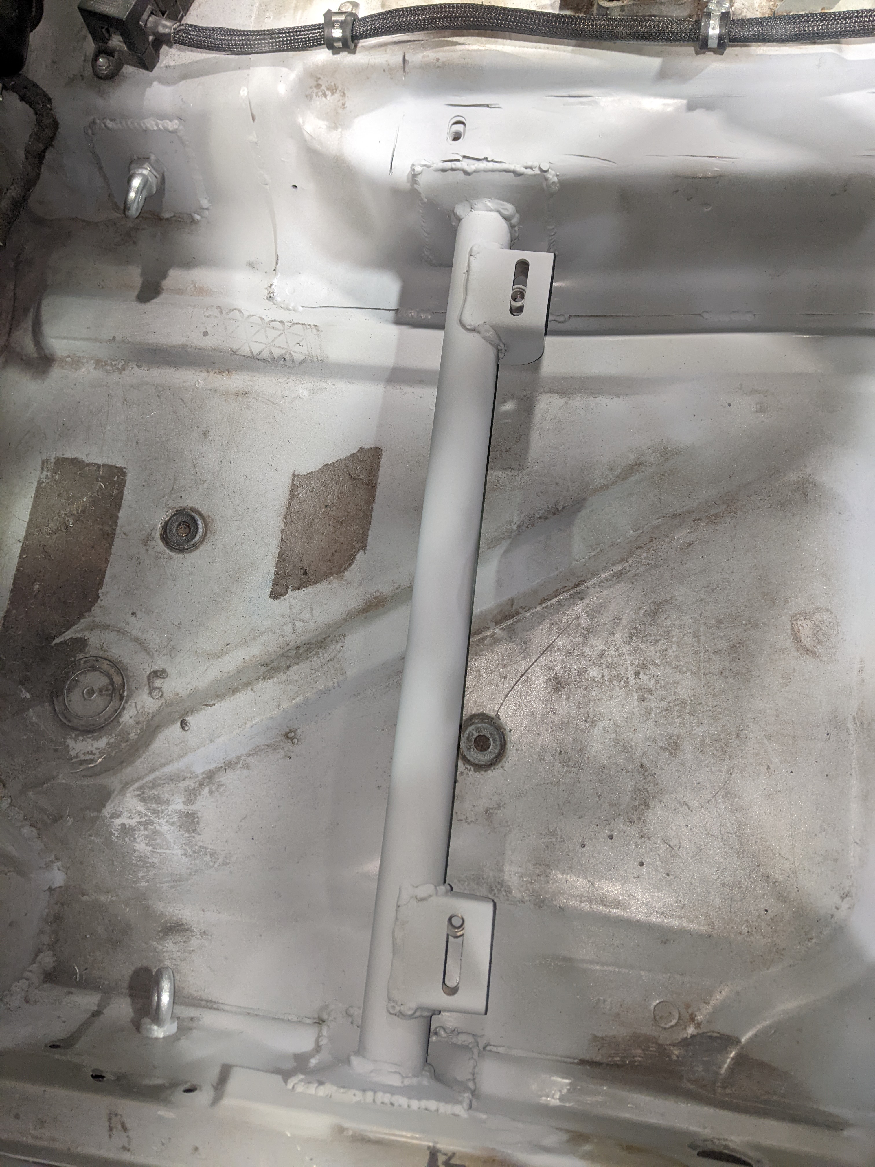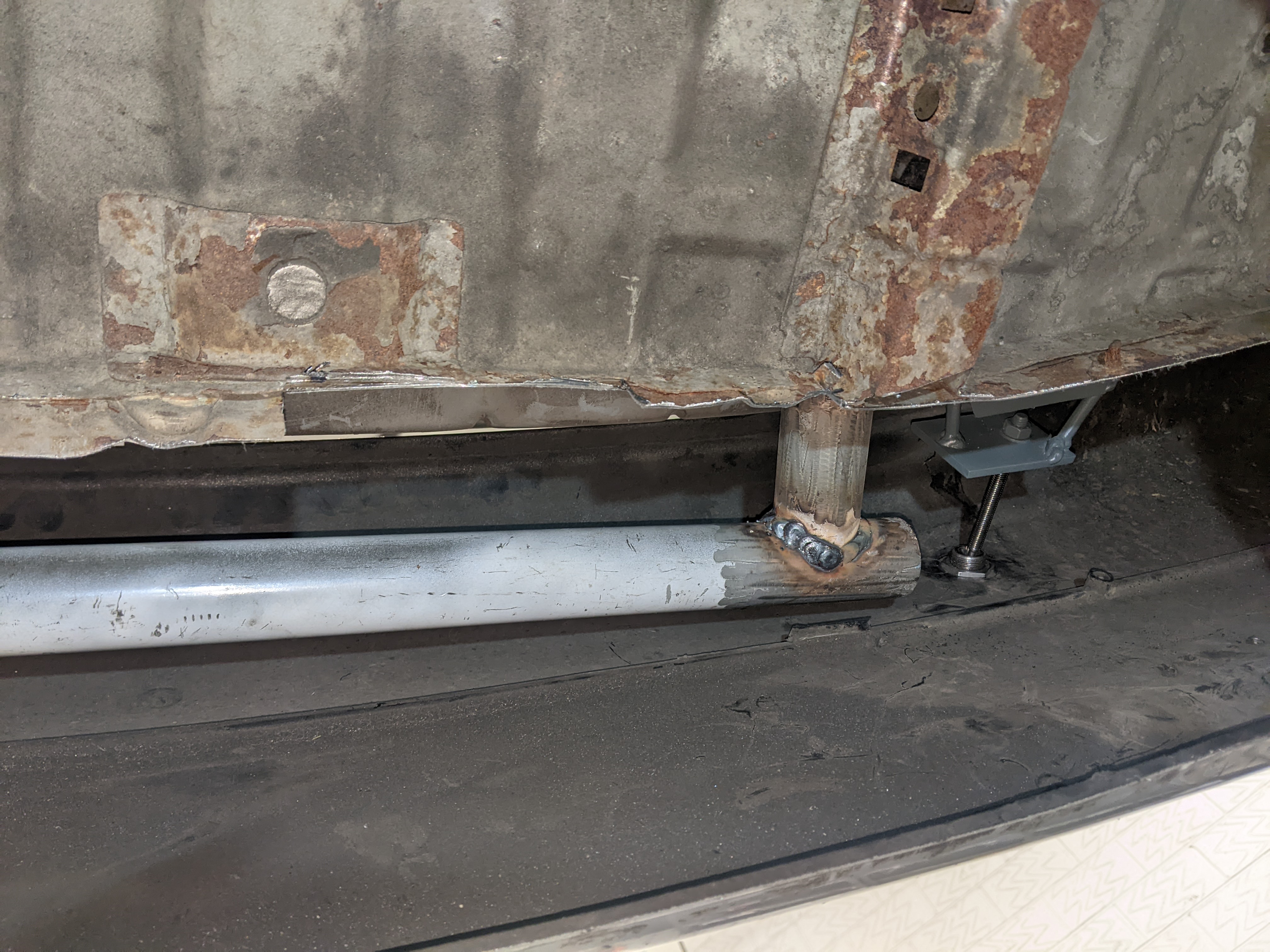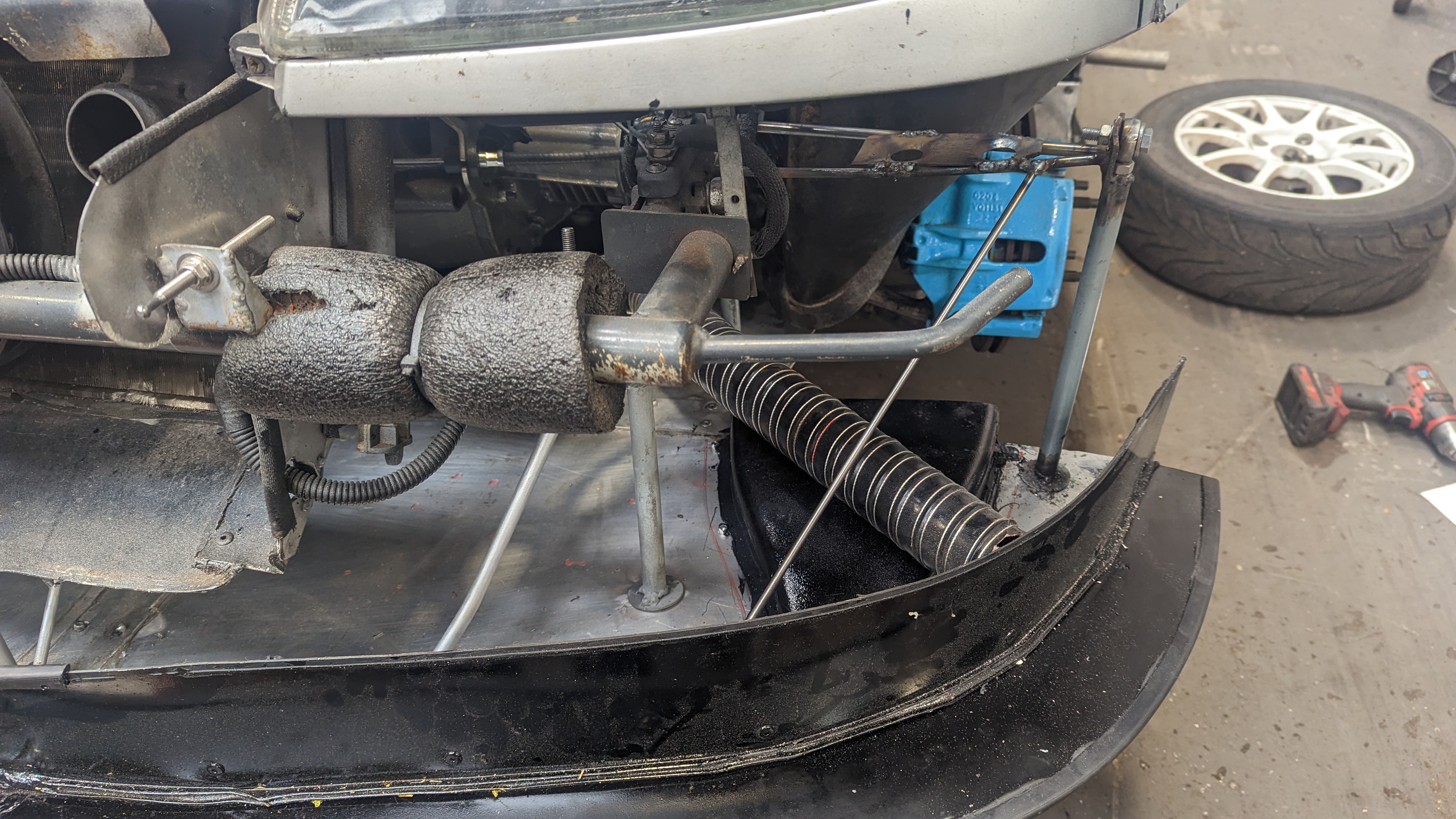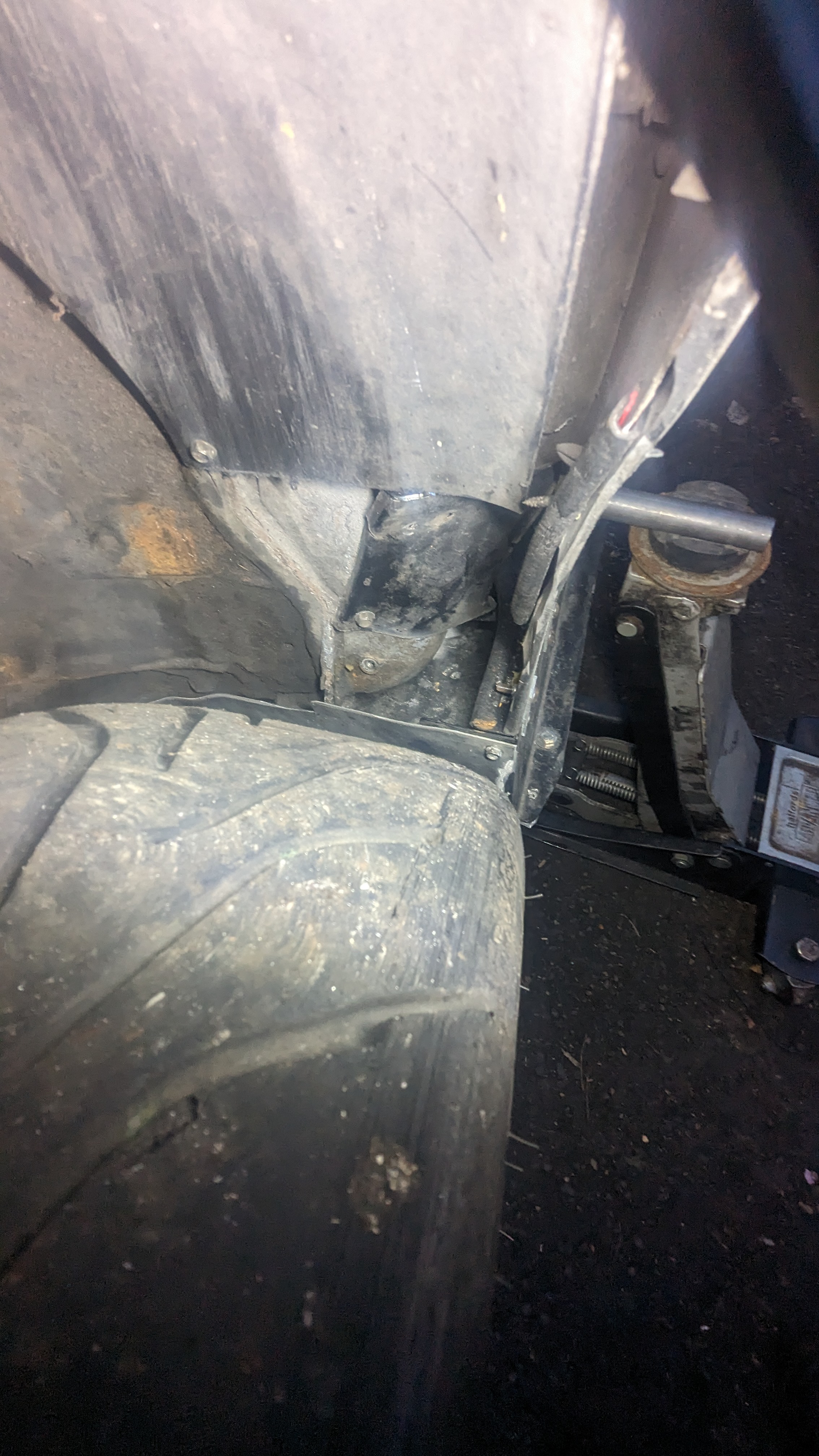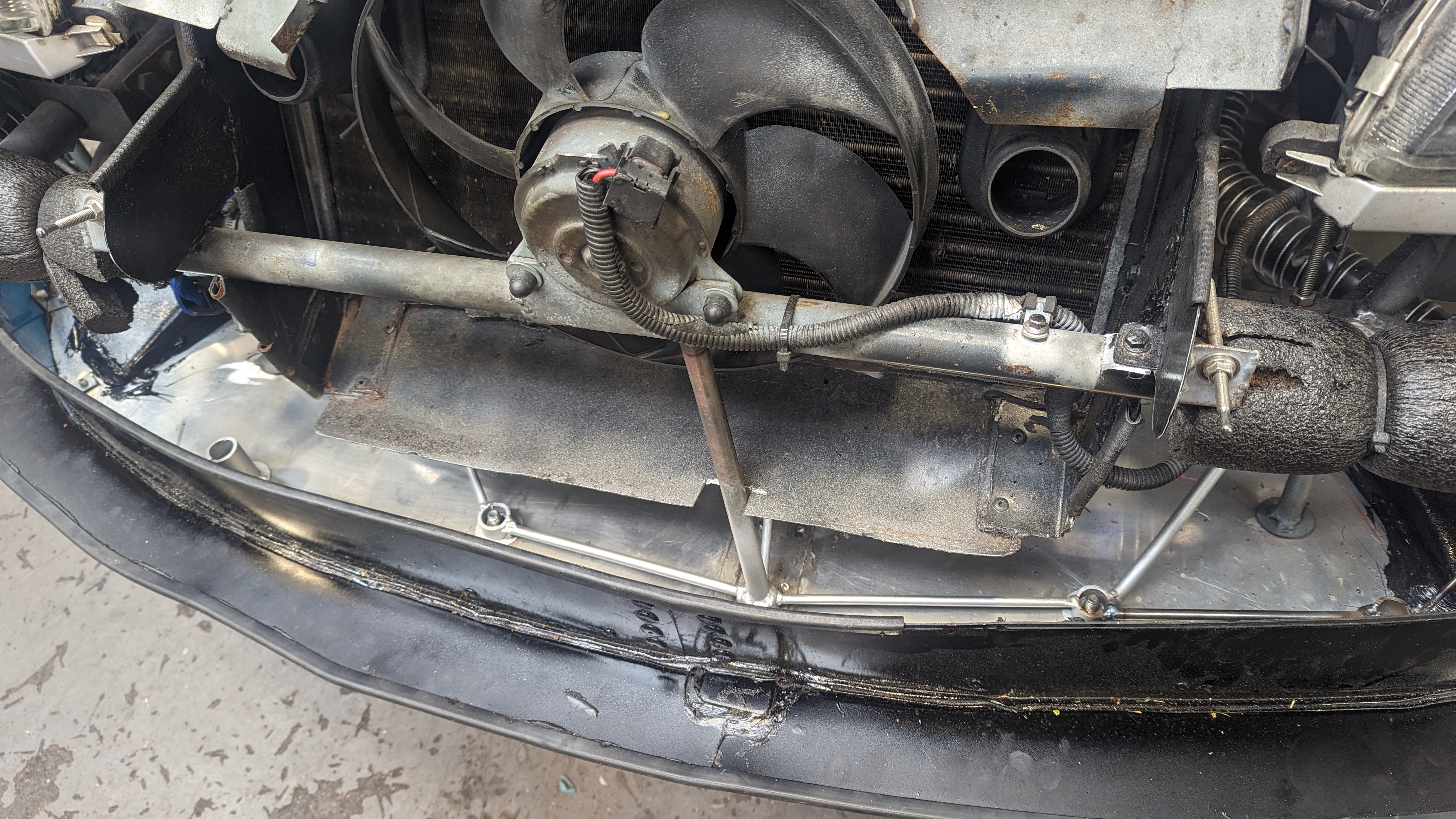 some pictures missing but didn't want a lower brace sticking out of the bottom of the front end so decided to weld on above the chassis leg to do the same job: