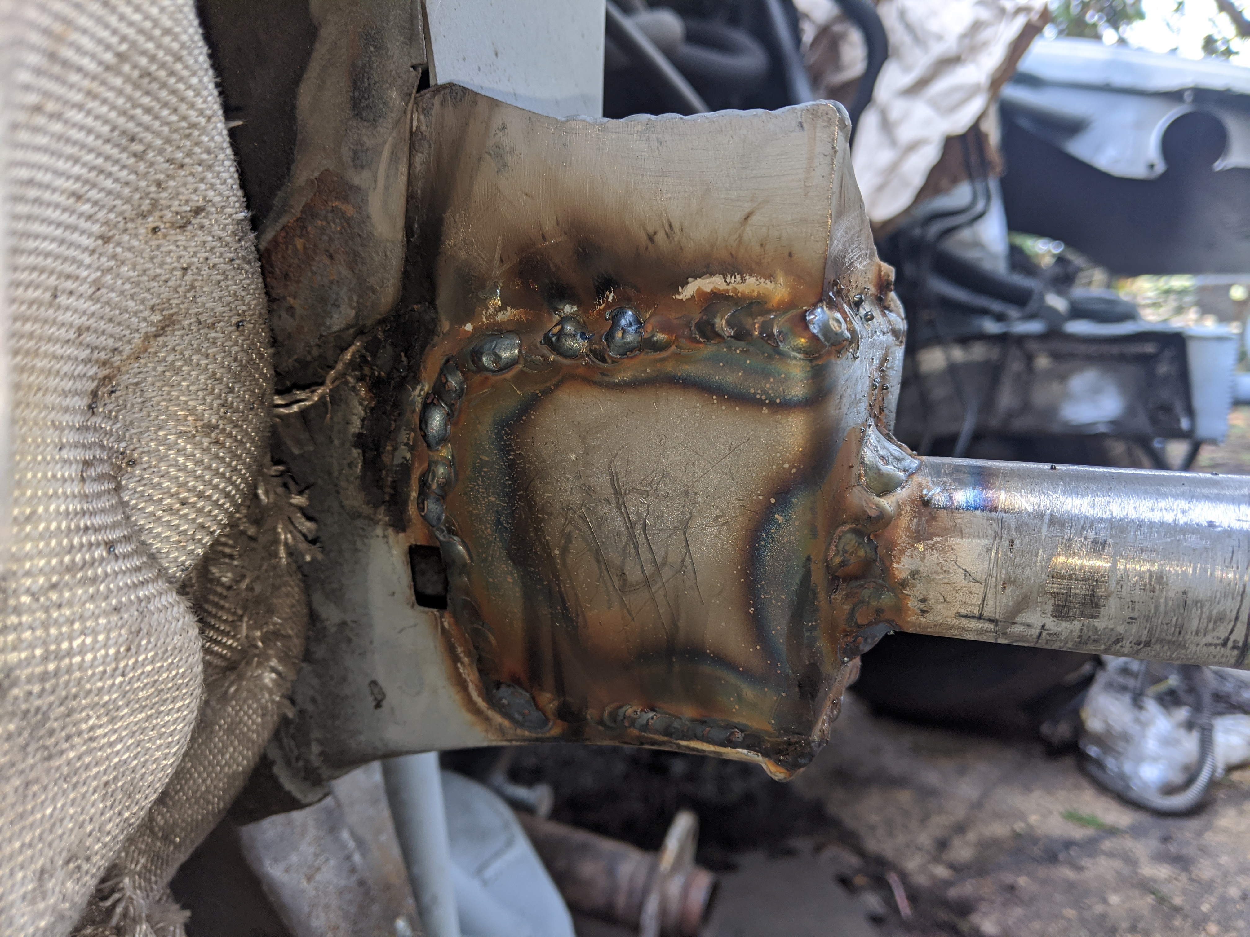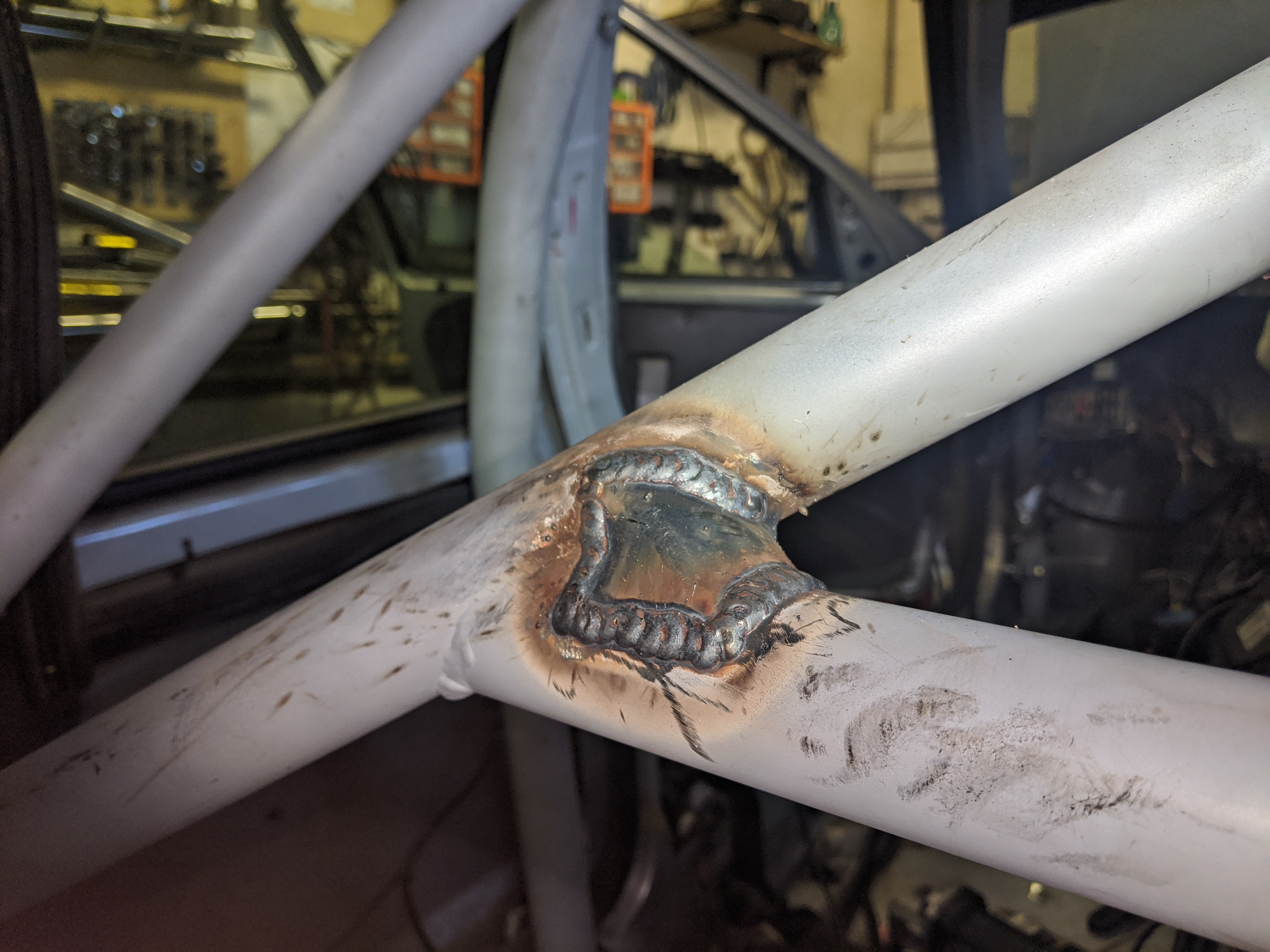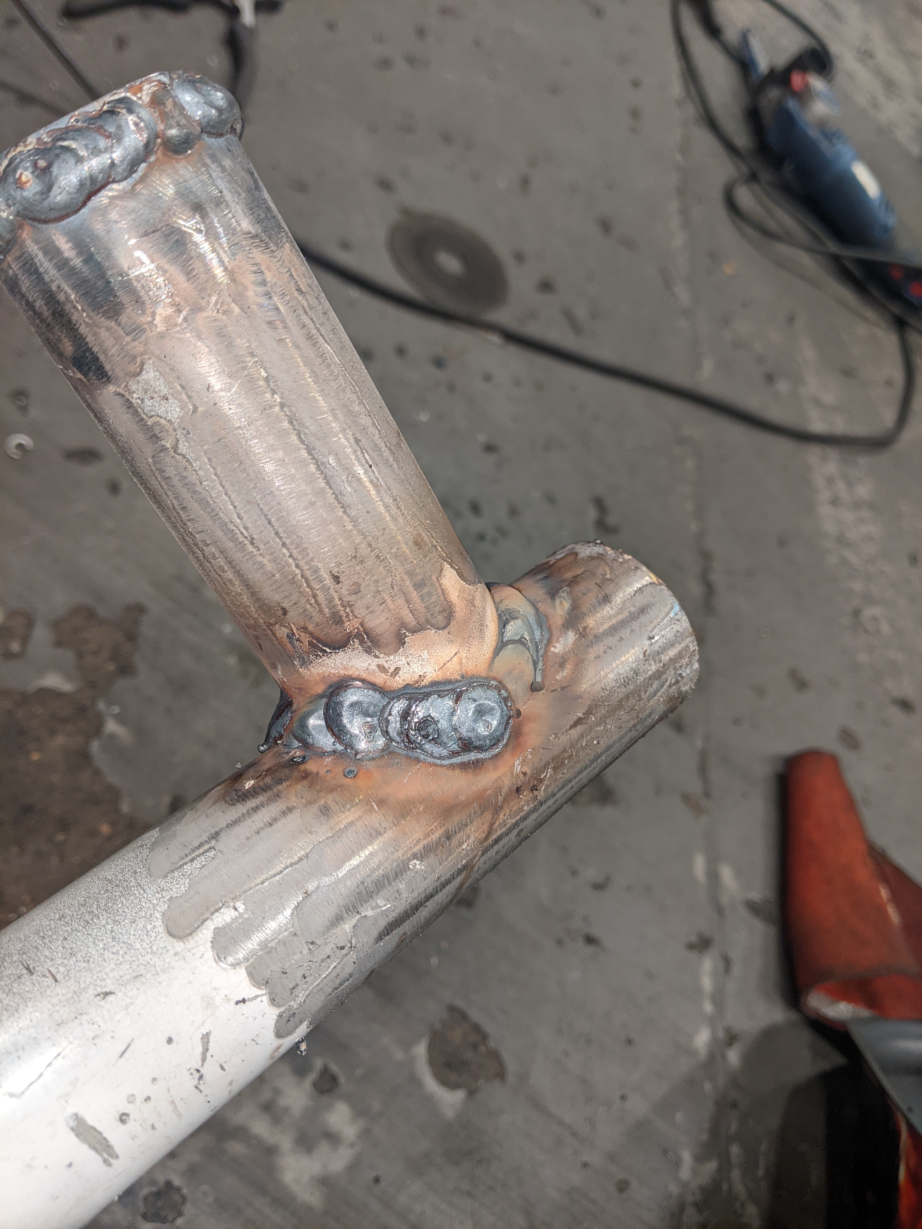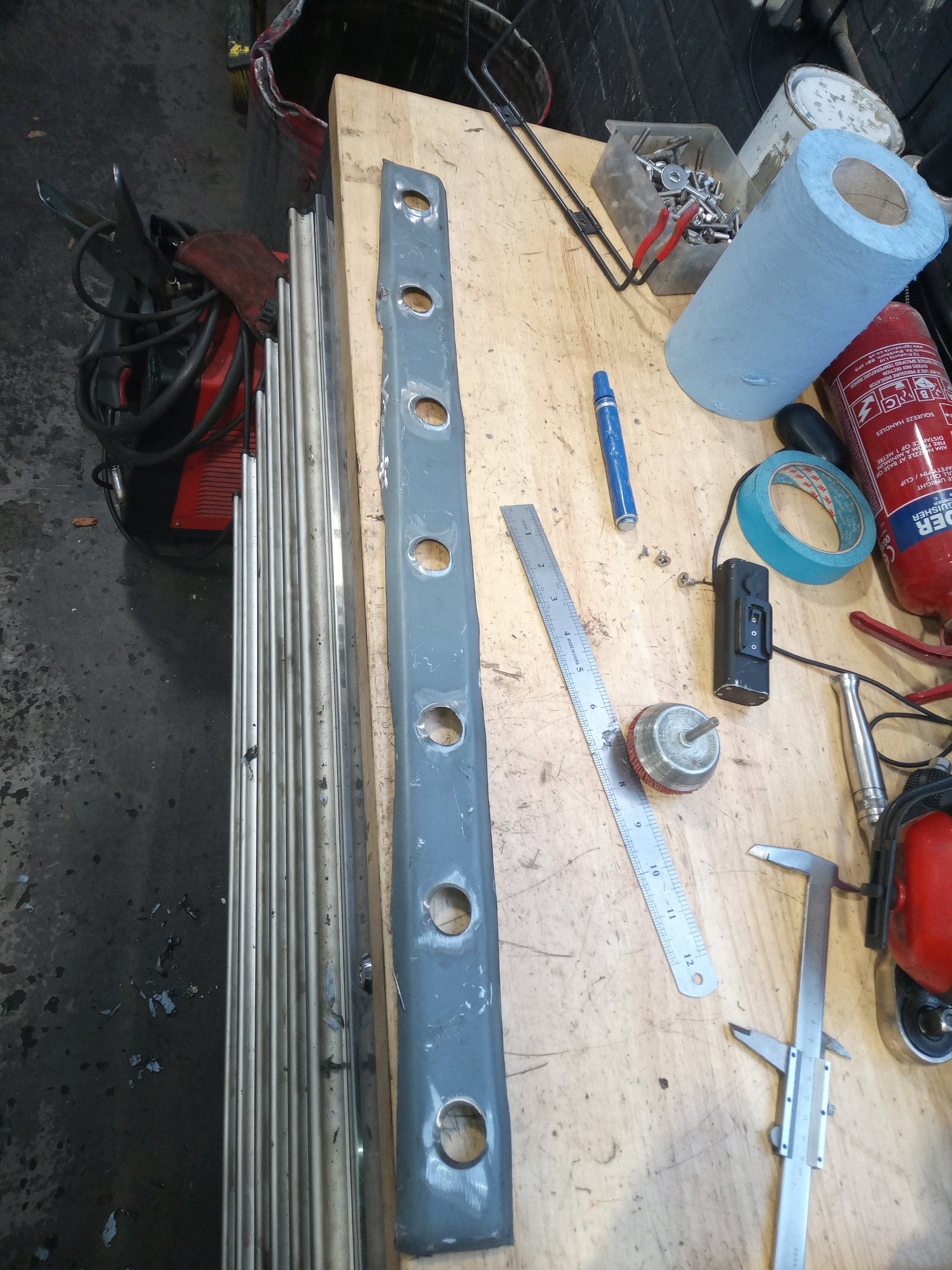 some pictures missing but didn't want a lower brace sticking out of the bottom of the front end so decided to weld on above the chassis leg to do the same job: